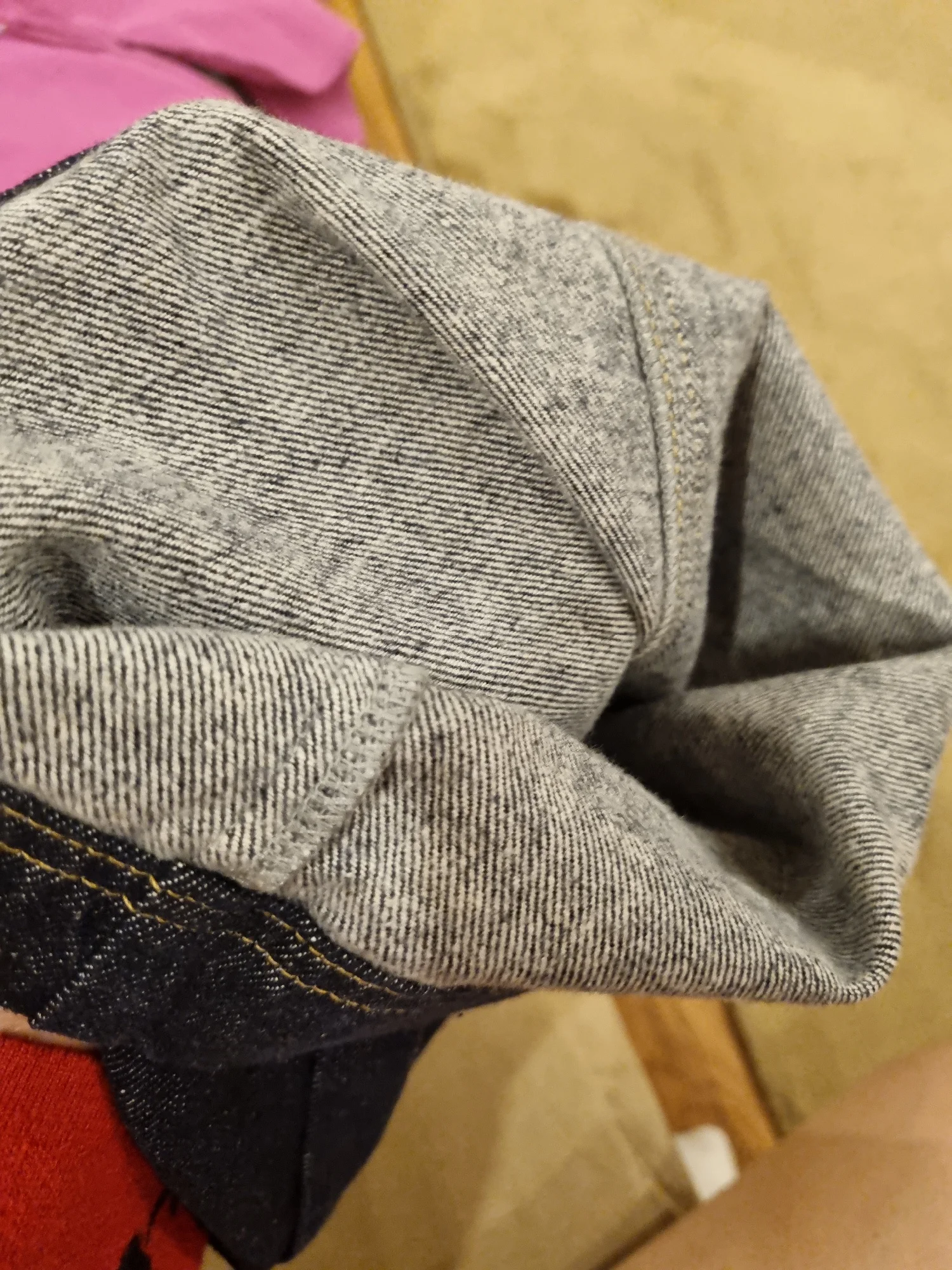 The fabric is thin, almost like it's not denim, but it's listed as 100 percent cotton, slightly insulated with a light fleece lining. does not hold its shape well.