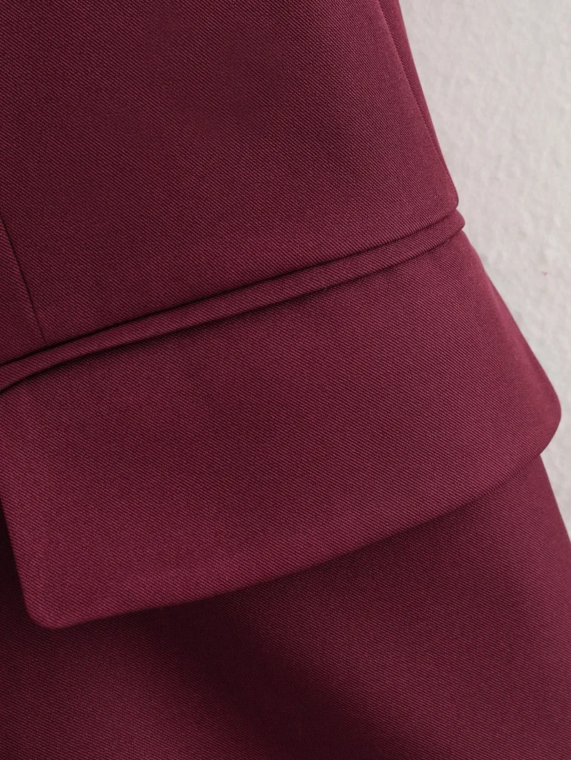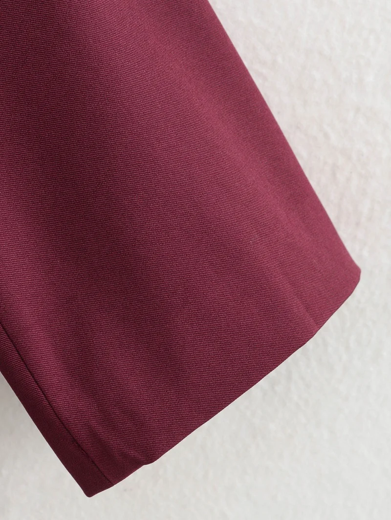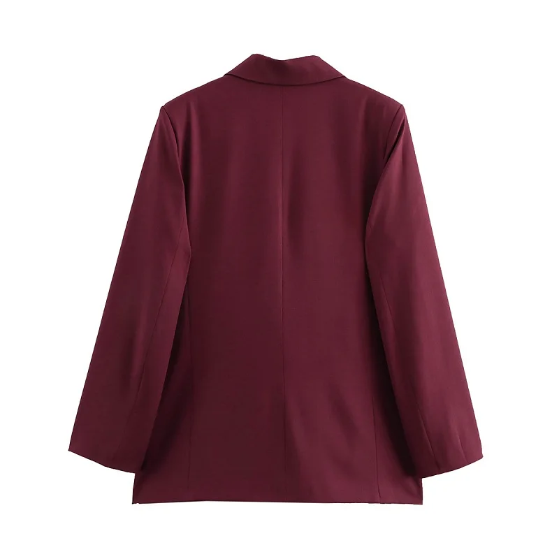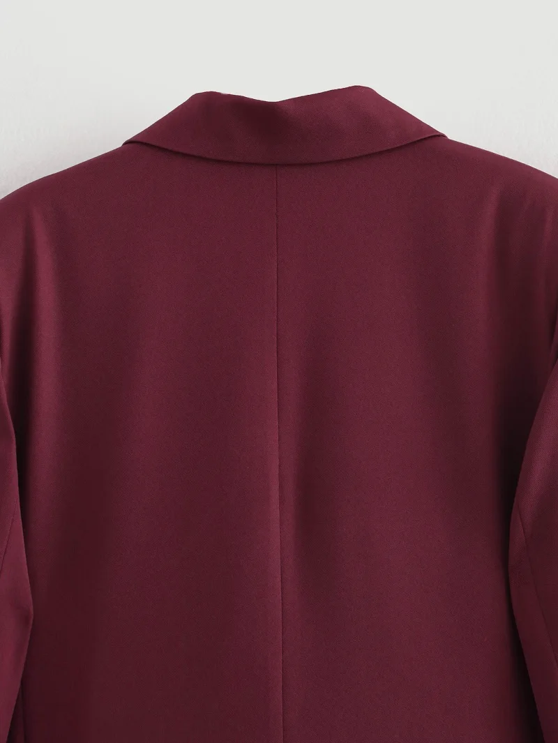 The Straight Long Blazer in Claret is designed for women seeking a refined, office-appropriate layer for autumn and winter. Crafted from a blended polyester fabric with a non-stretch, standard thickness, it offers a structured silhouette that maintains form throughout the day.