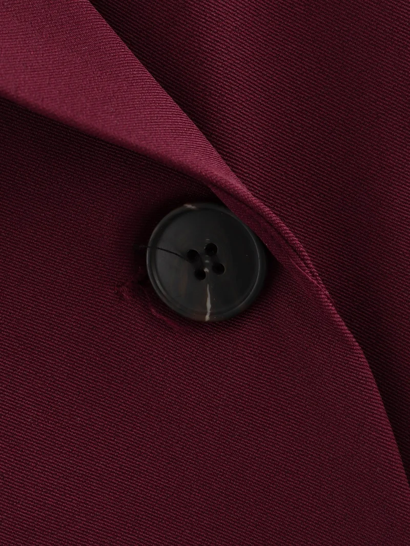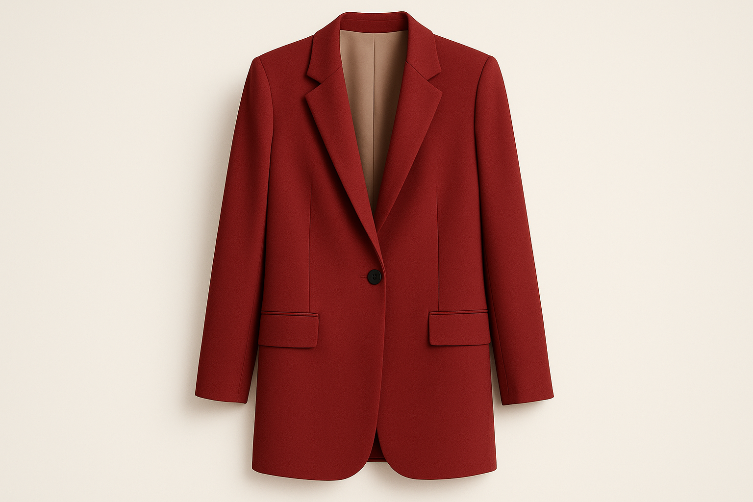 Q: Can this blazer be worn outside office settings?A: The blazer’s refined design and deep claret colour make it appropriate for both professional environments and polished casual occasions.