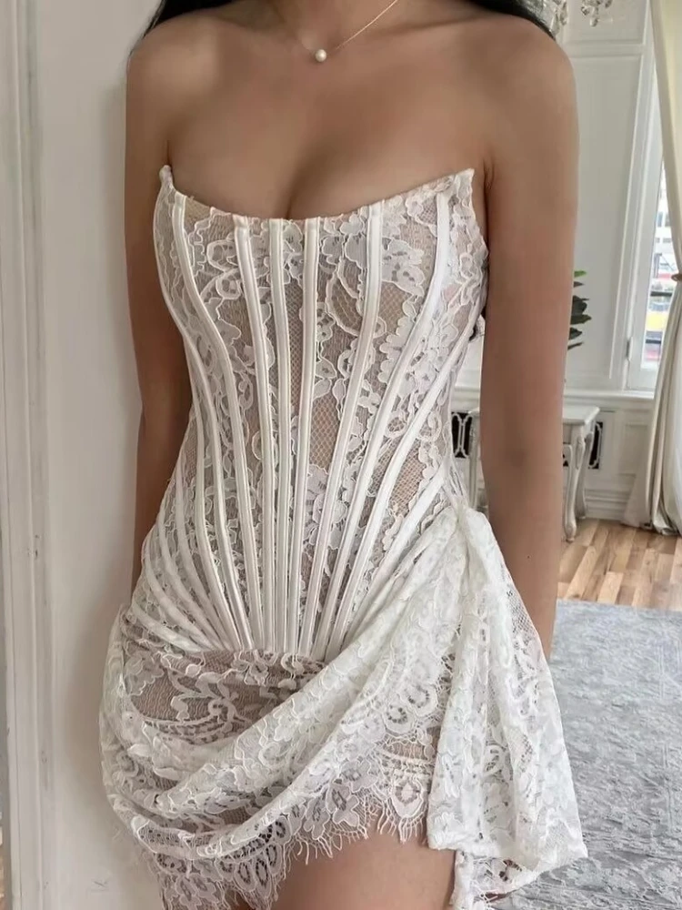 Elegant Strapless Lace Corset Mini Dress for Parties