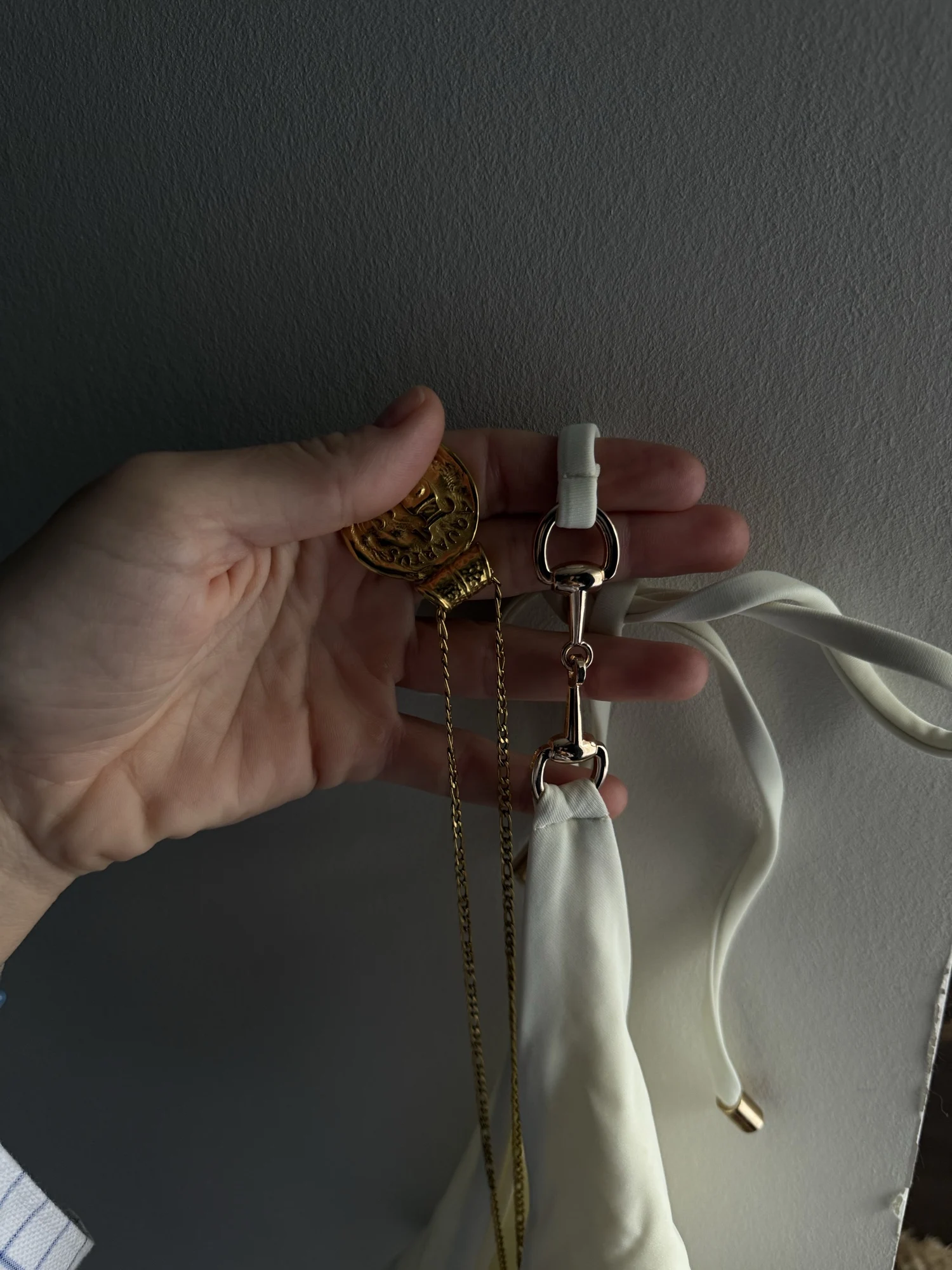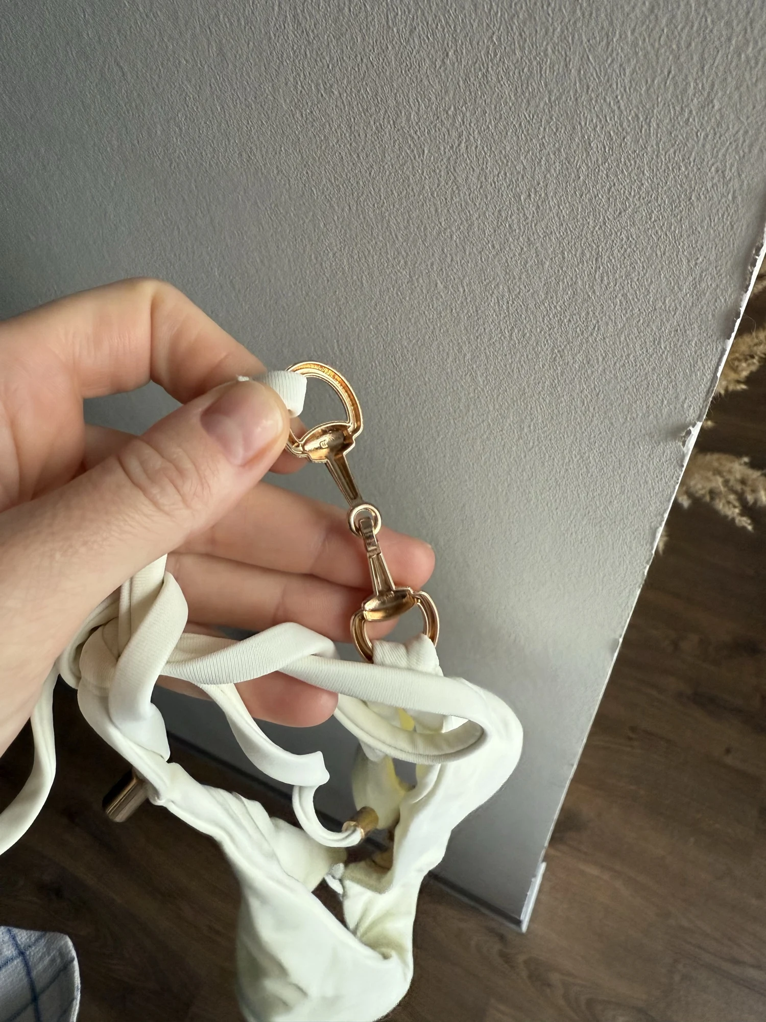 The hardware is not gold as in the photo, but pink.