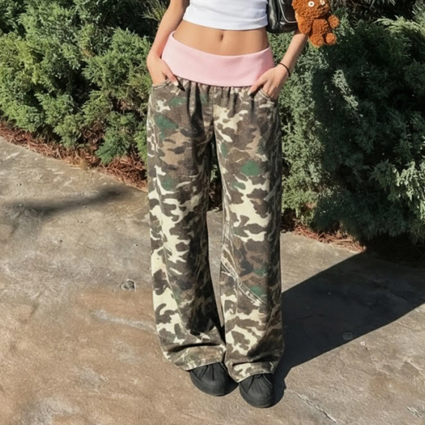 Pair with cropped tanks and chunky sneakers for authentic Y2K vibes, or style with fitted tops and platform boots for elevated streetwear sophistication. The multi-tonal camo pattern effortlessly coordinates with both neutral and bold pieces in your wardrobe.
