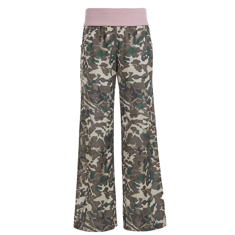 Y2 K Camo Patchwork Joggers Women Straight Leg Urban Style