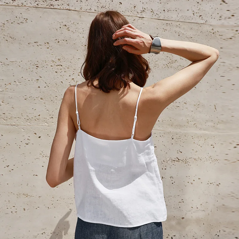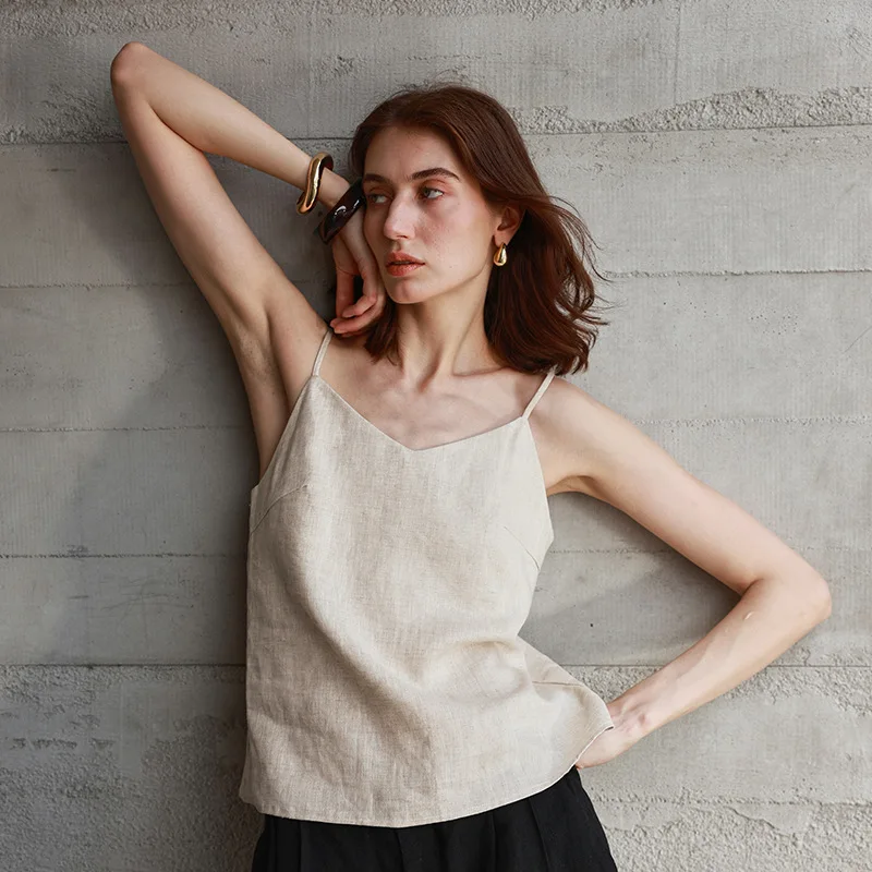 Stylish 100% Linen V-Neck Crop Top for Summer Fun
