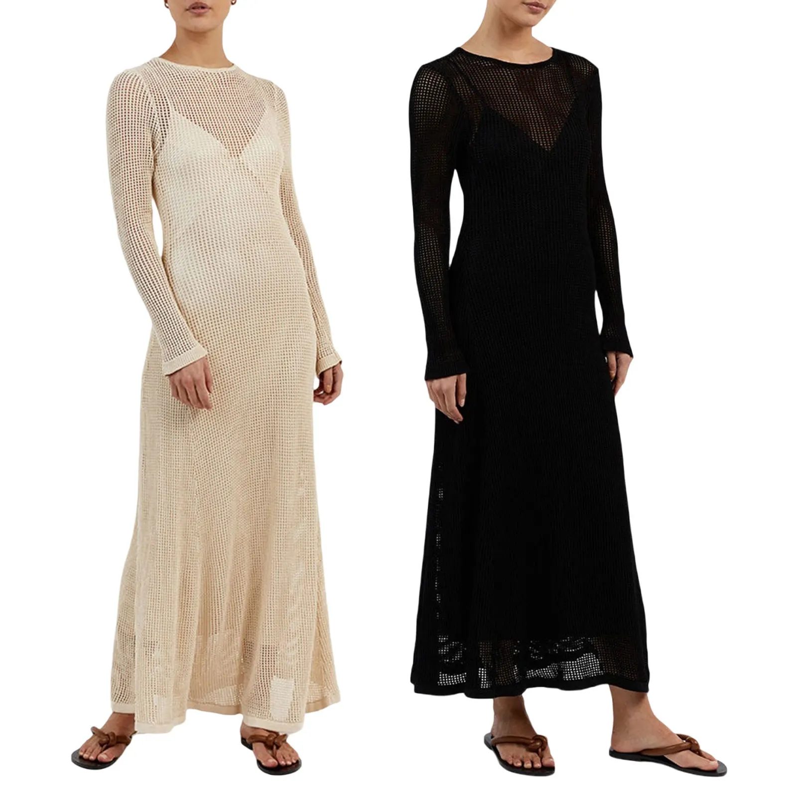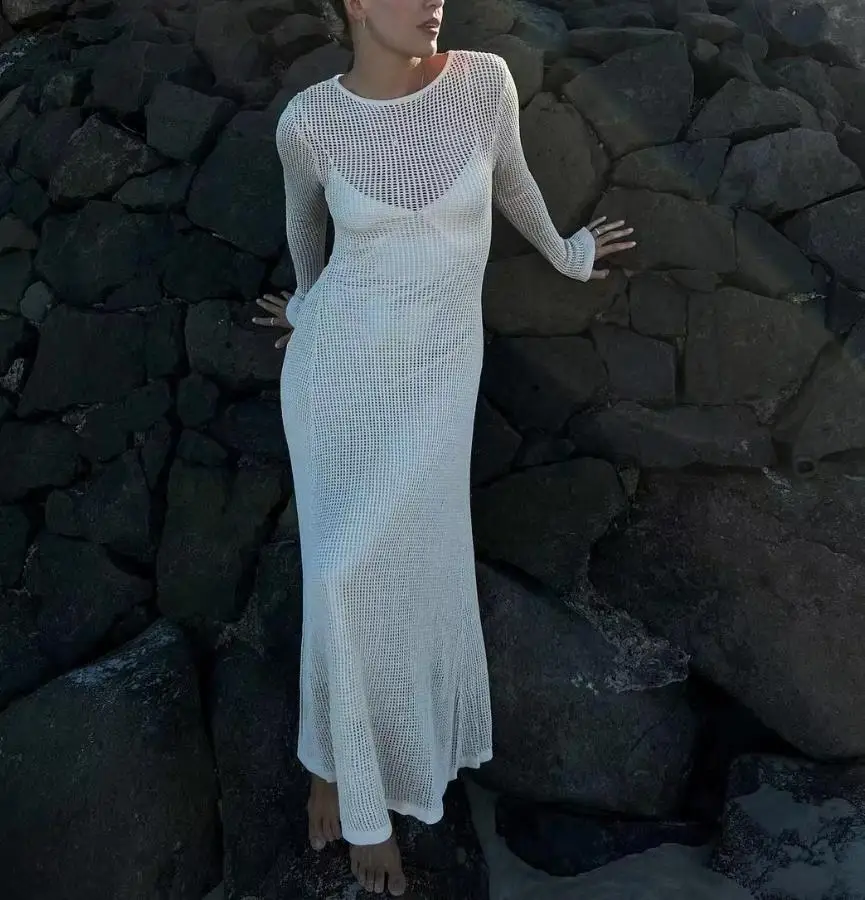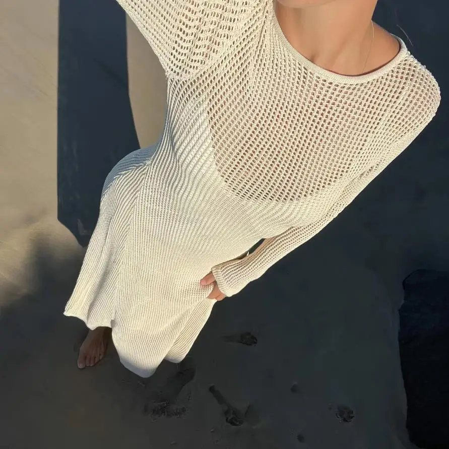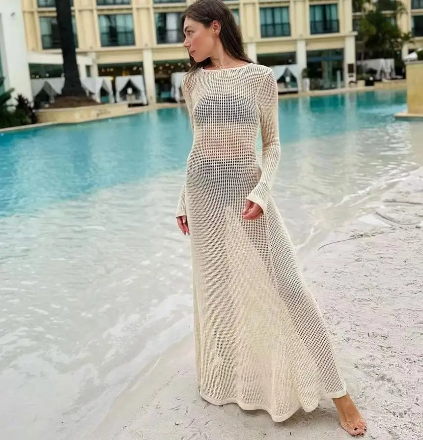 Luxe Knit Beach Cover-Up Dress – Sheer Long Sleeve Resort Wear