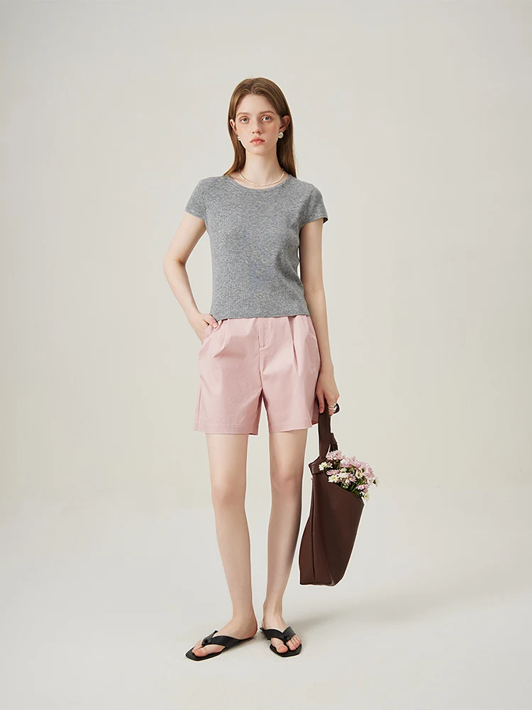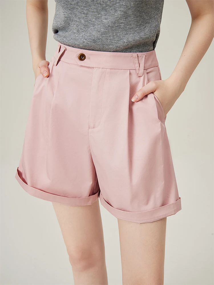Summer Casual High Waist Women Shorts in Beige and Pink