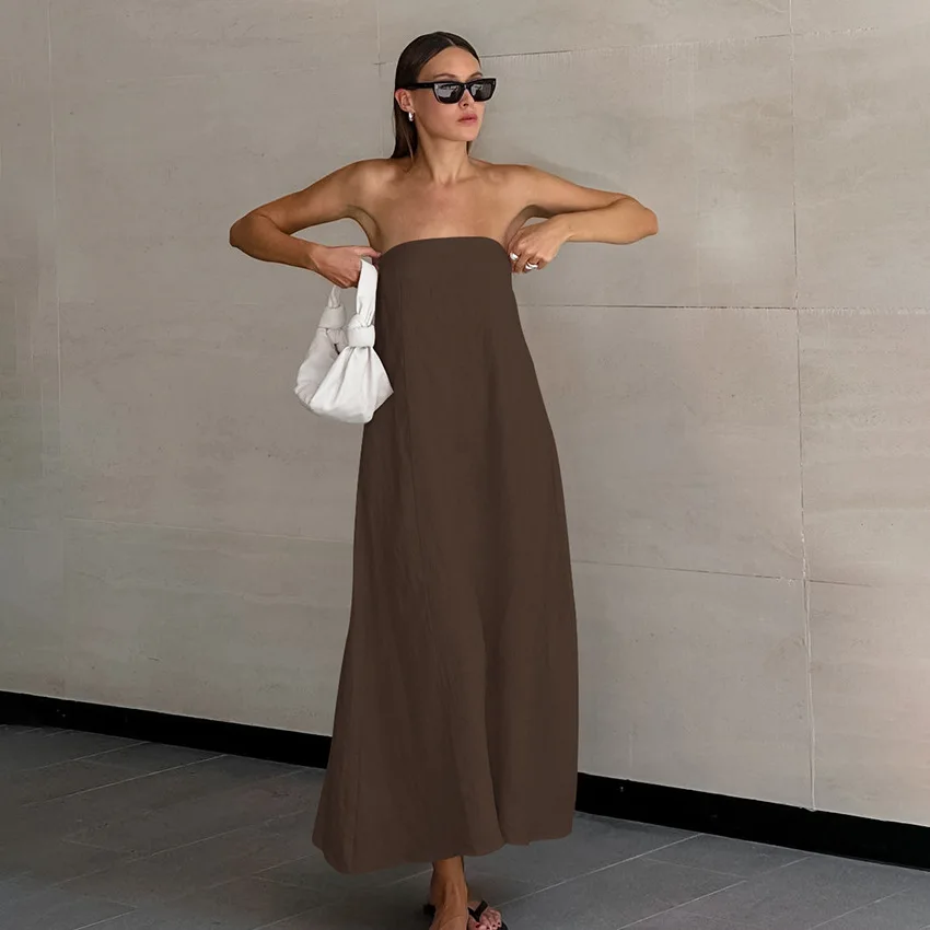 Introducing the Summer European and American Khaki Cotton and Linen Tubeless Dress