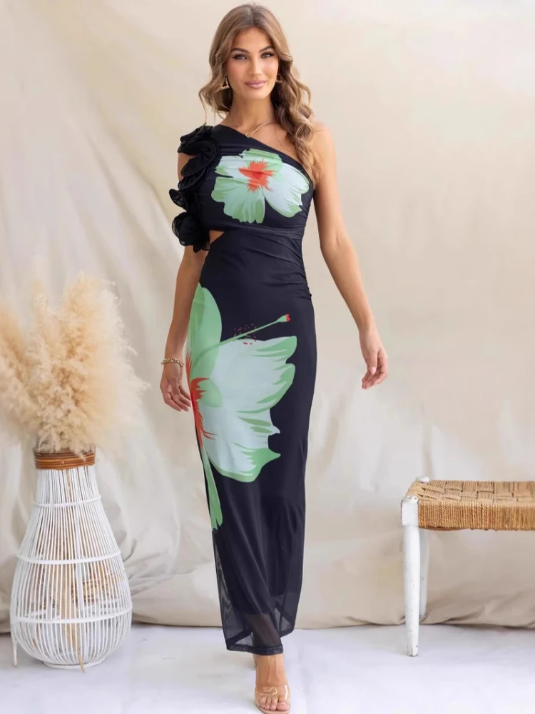One-Shoulder Elegant Print Dress for Stylish Summer Getaways