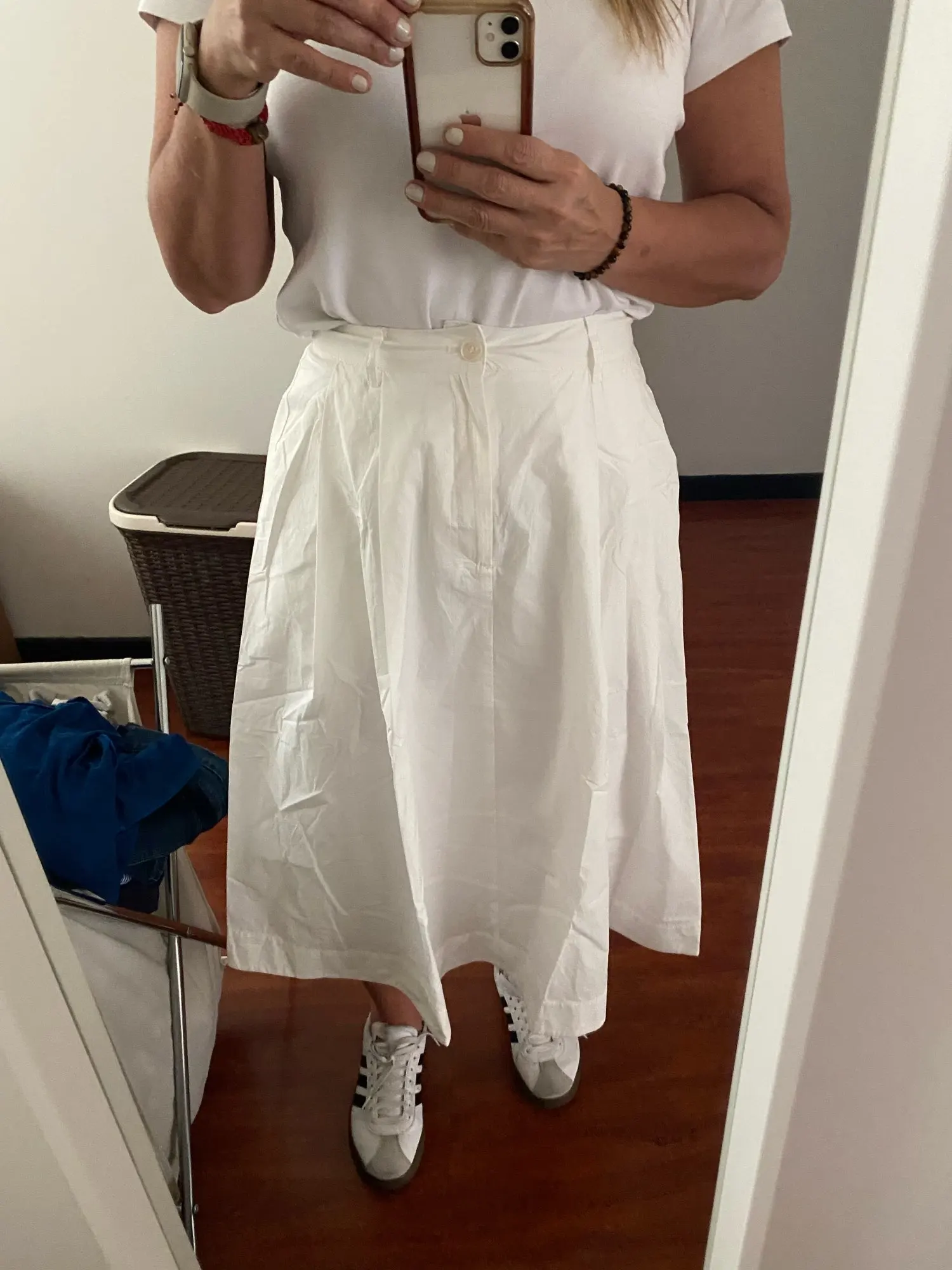 20 reviews for Summer High Waist A-Line Midi Skirt with Adjustable Waist and Hidden Pockets