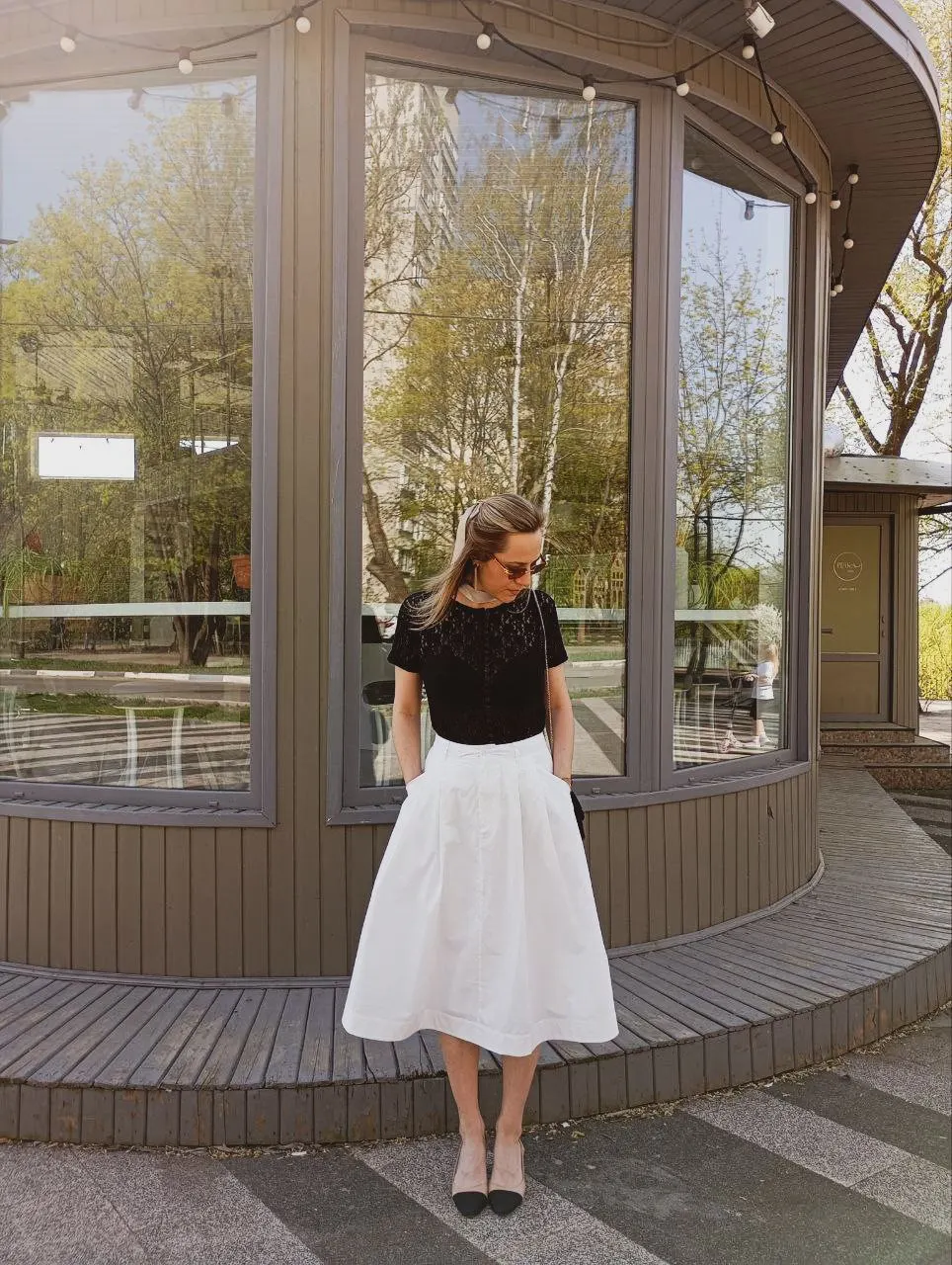 Designed for the modern woman seeking understated elegance, this Summer High Waist A-Line Midi Skirt in crisp white offers a refined silhouette crafted from breathable 100% cotton broadcloth. The empire waist and subtle A-line shape provide a flattering, slim fit that moves gracefully through the day.