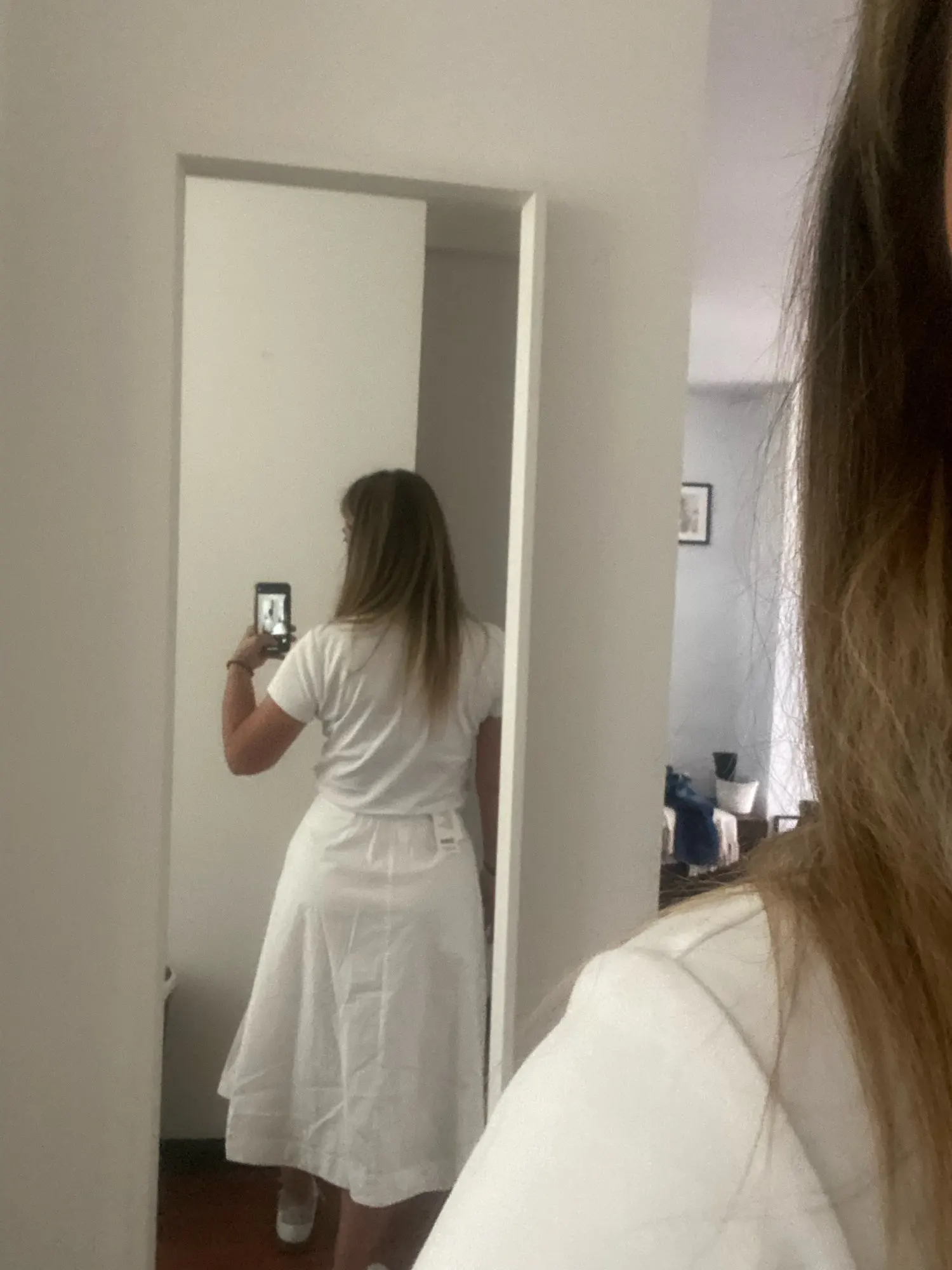 Fit Notes: This skirt offers a slim fit that contours gently to the body without constriction. The empire waist sits just below the bust, elongating the legs and creating a balanced profile. Available in sizes XS to L, it accommodates a range of body shapes with its adjustable waistband.