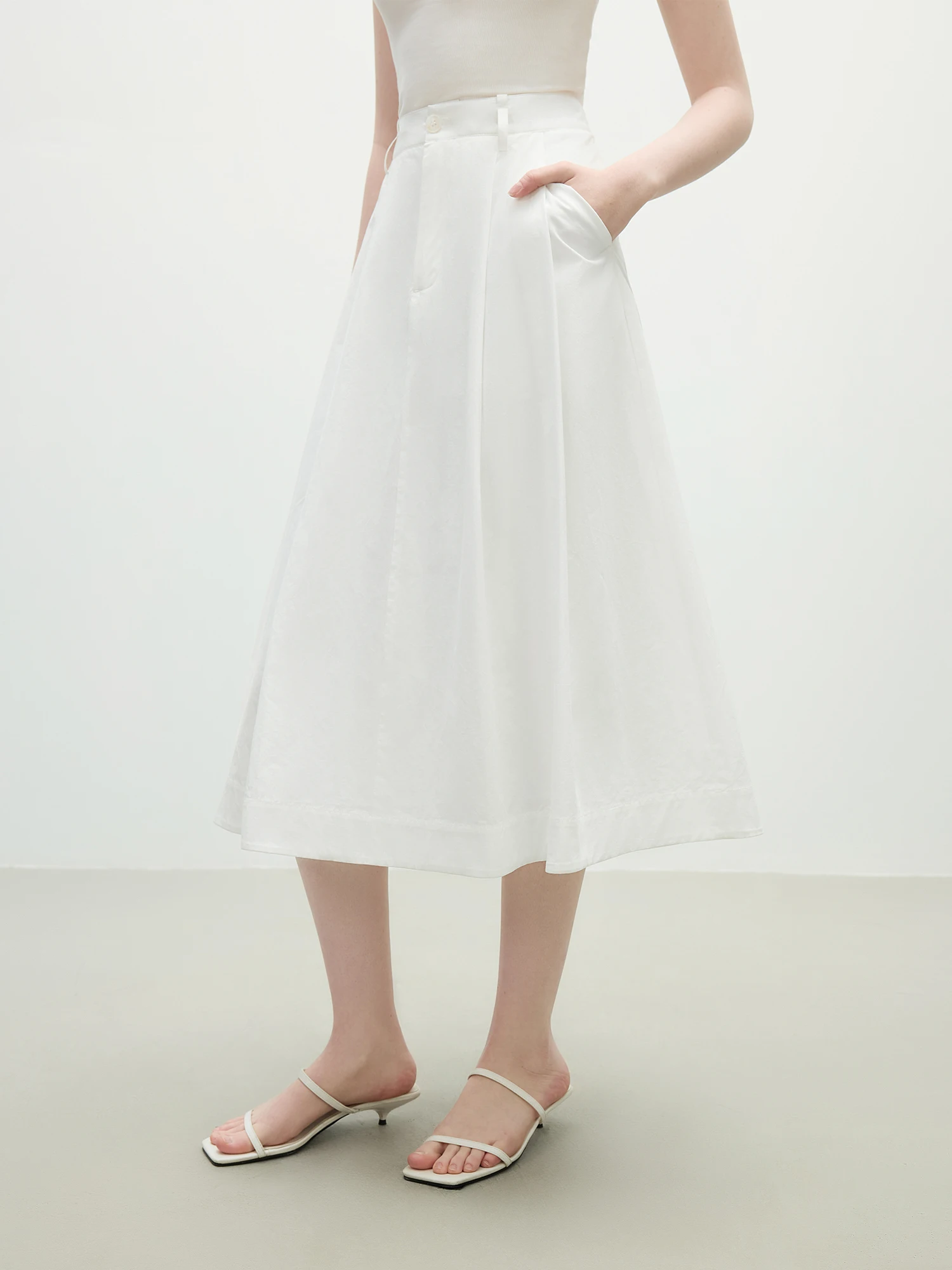 Summer High Waist A-Line Midi Skirt with Adjustable Waist and Hidden Pockets