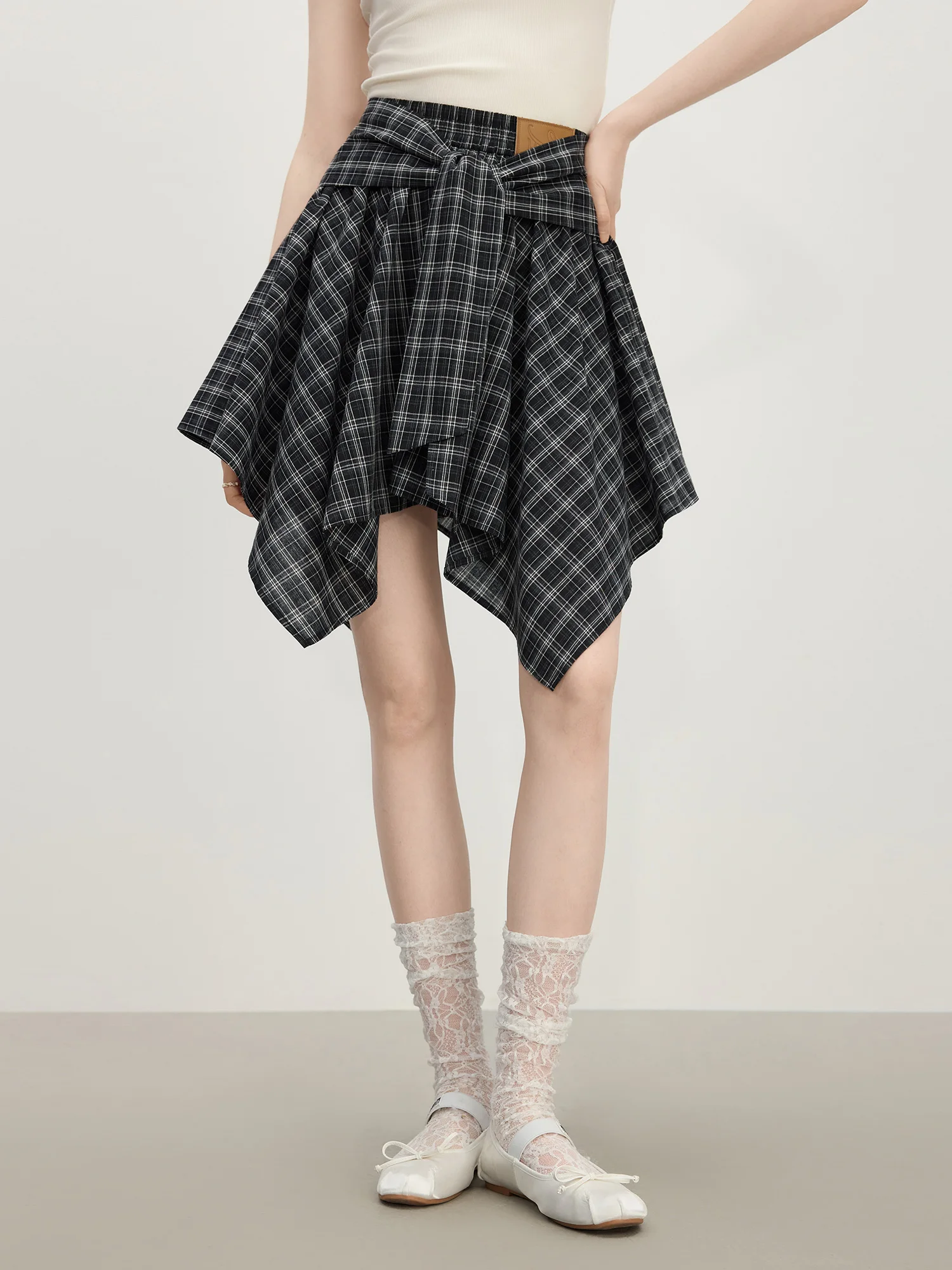 Fabric & Care: Made from 34.0% polyester fiber, 33.3% regenerated cellulose fiber, and 31.4% cotton, the fabric composition offers a soft yet structured hand feel. The slight stretch lends flexibility, making this skirt suitable for extended wear. For maintenance, hand wash is recommended to preserve the texture and shape; dry cleaning is not advised.