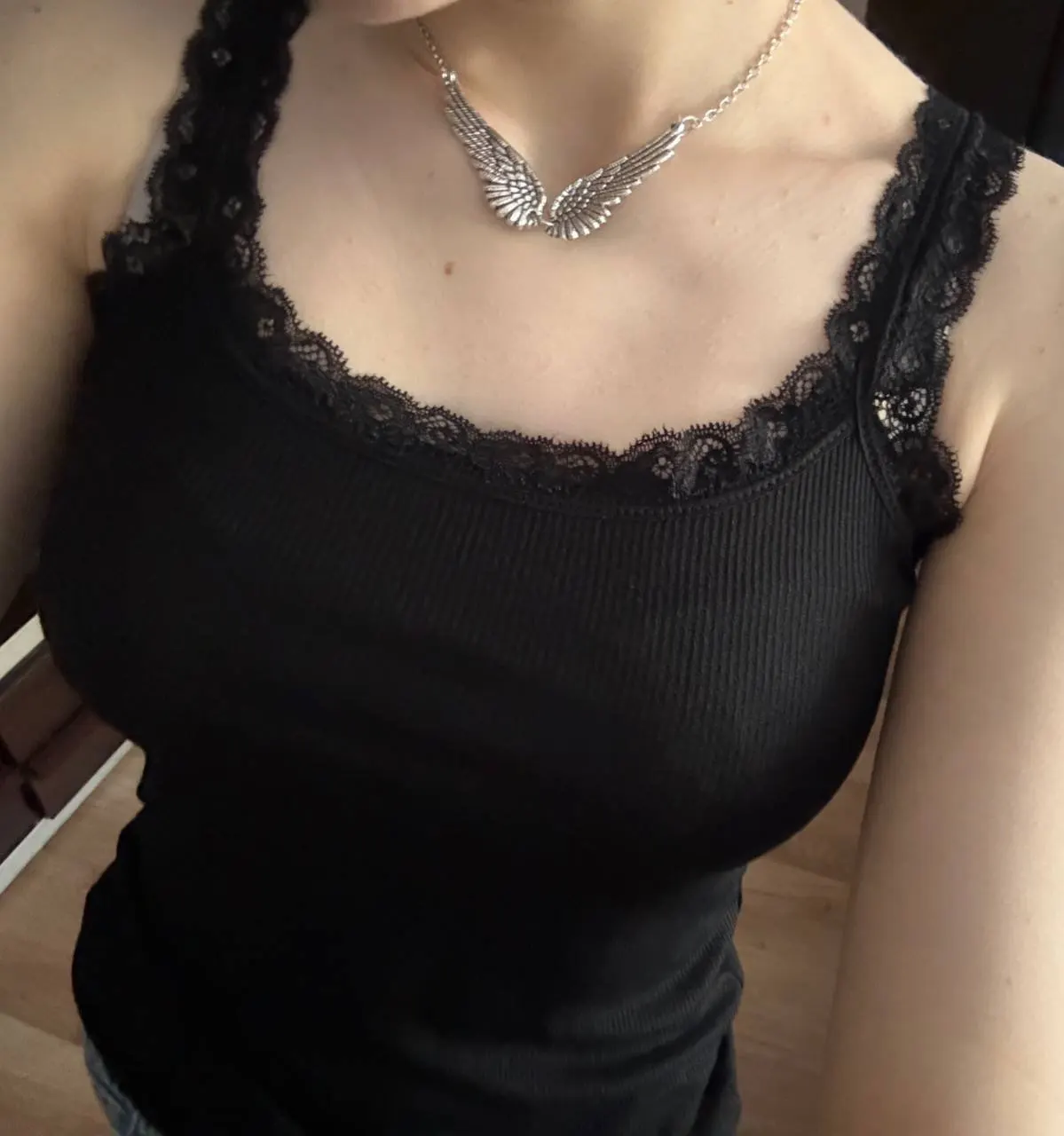 Or wear a tank top underneath, this lace top, and then drape a cardigan over it.
