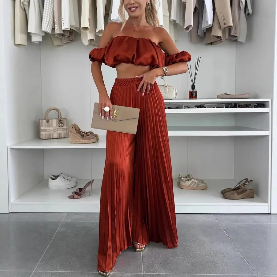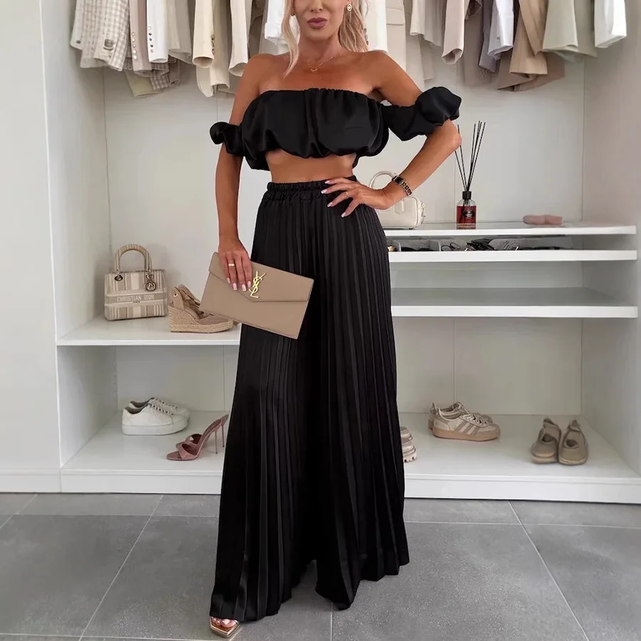 Chic Off-Shoulder Top & Wide Leg Pants Set – Summer Vibes