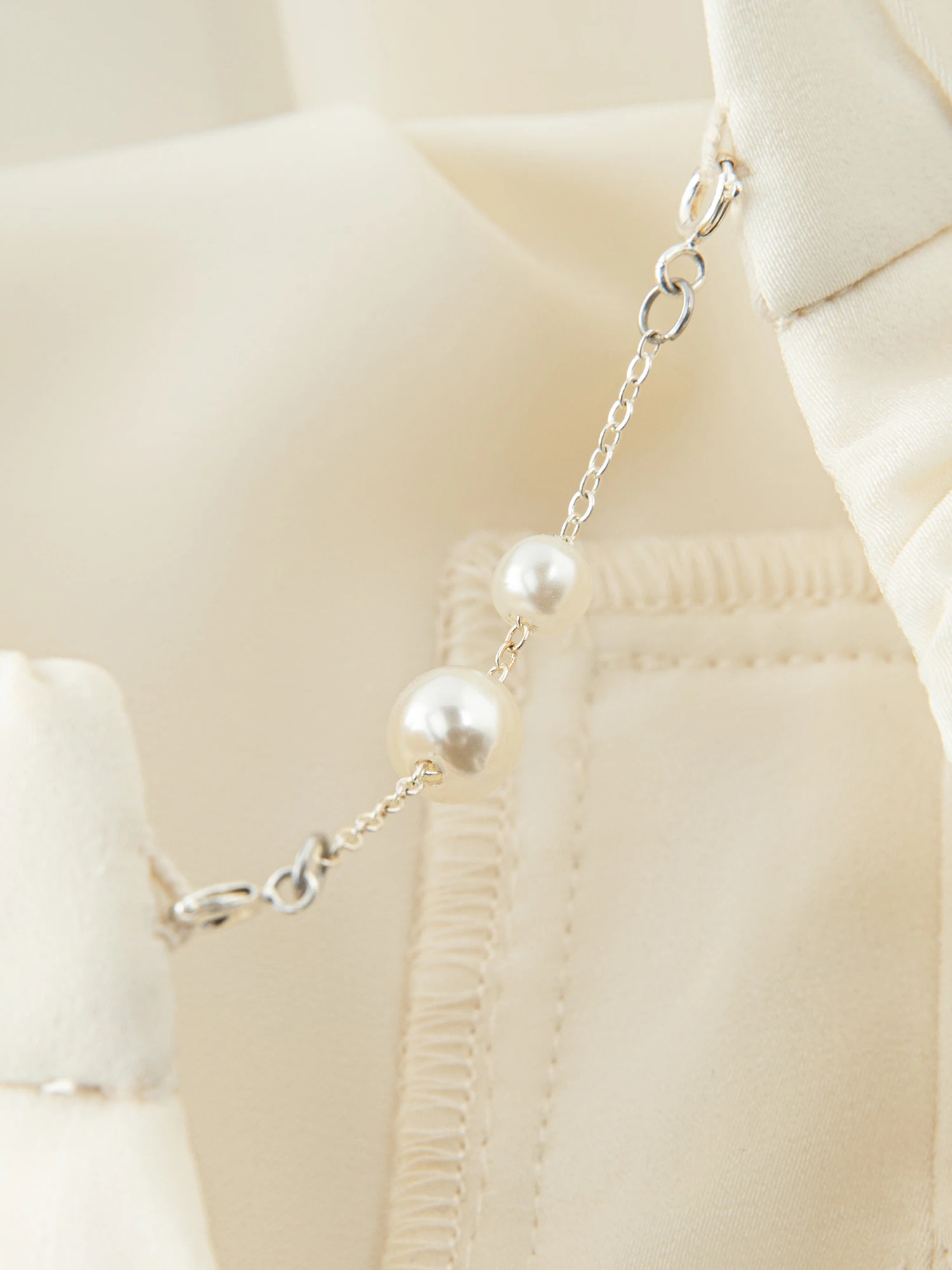 Q? Is this blouse suitable for office wear?A Yes, its refined design and neutral beige tone make it appropriate for professional settings and polished casual occasions.