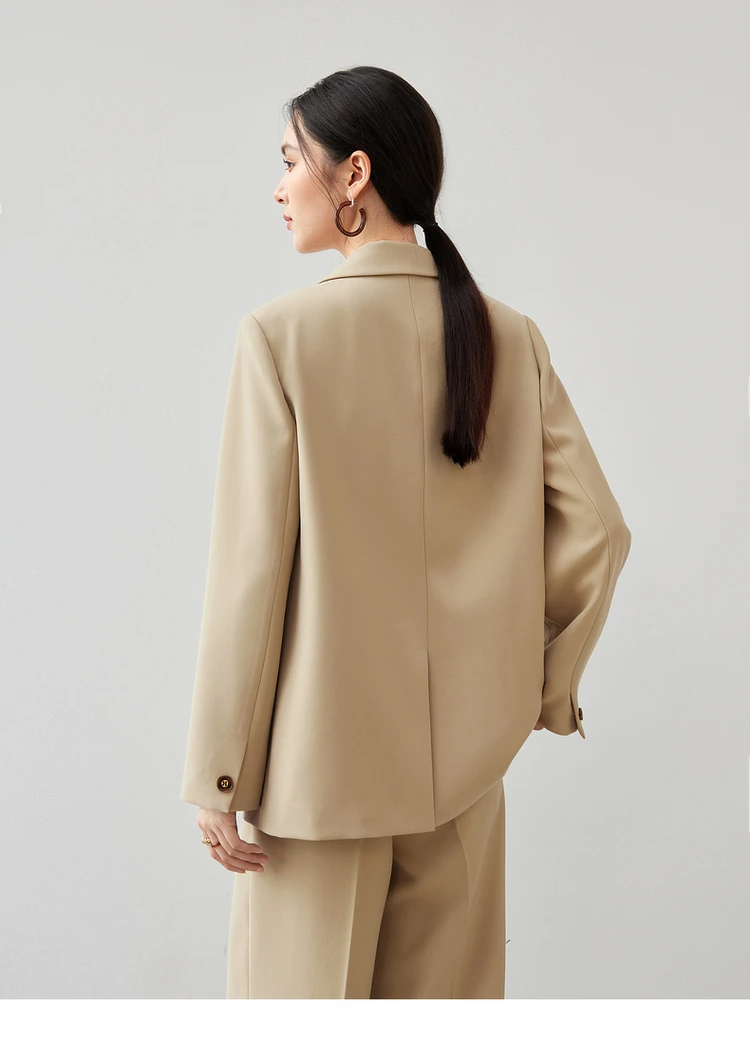 The Texture Loose Tailored Coat with Turn-Down Collar offers a relaxed yet structured silhouette, designed for women seeking refined office wear with ease. Crafted from a polyester and spandex blend, it provides subtle stretch and comfortable movement throughout the day.