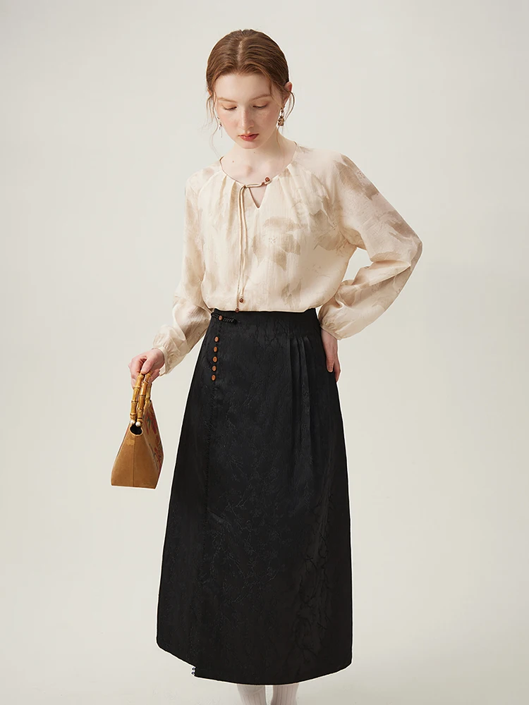 Fabric & Care: Crafted from jacquard fabric that combines viscose, polyester, and spandex, this skirt offers a lightweight yet structured feel. The viscose component provides breathability and softness, while polyester adds durability. Spandex contributes subtle elasticity for comfort. For care, we recommend gentle hand washing or delicate machine wash cycles, avoiding high heat when ironing to maintain the fabric’s integrity.