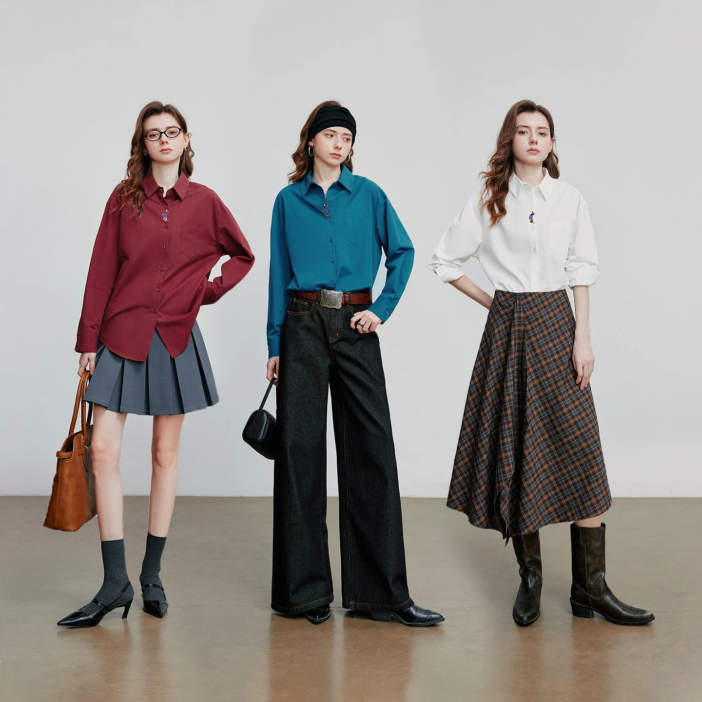 Elevate your autumn wardrobe with the TOYOTUH Long Sleeve Blouse, crafted from 100% pure cotton for ultimate comfort. Featuring charming dog embroidery, this versatile shirt is perfect for casual outings or office wear. Available in vibrant colors, it offers a regular fit with a single-breasted closure, ensuring a smooth, confident fit for every body. Embrace style and warmth this season!
