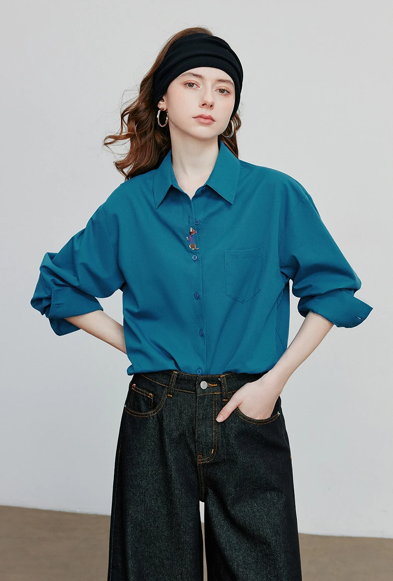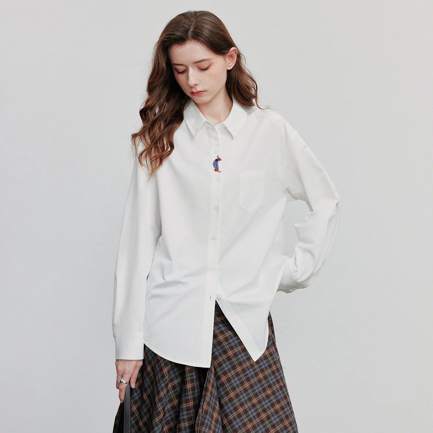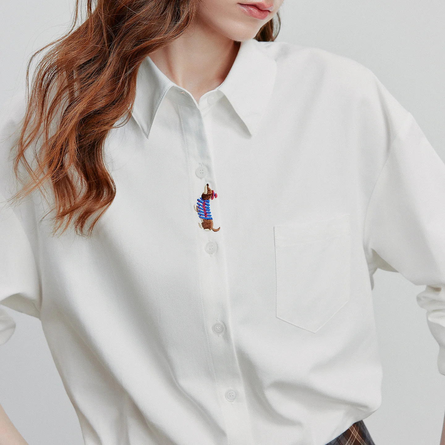 TOYOTUH Women Long Sleeve Blouse Shirt Autumn New 100% Pure Cotton Dog Embroidery Versatile Shirt Tops