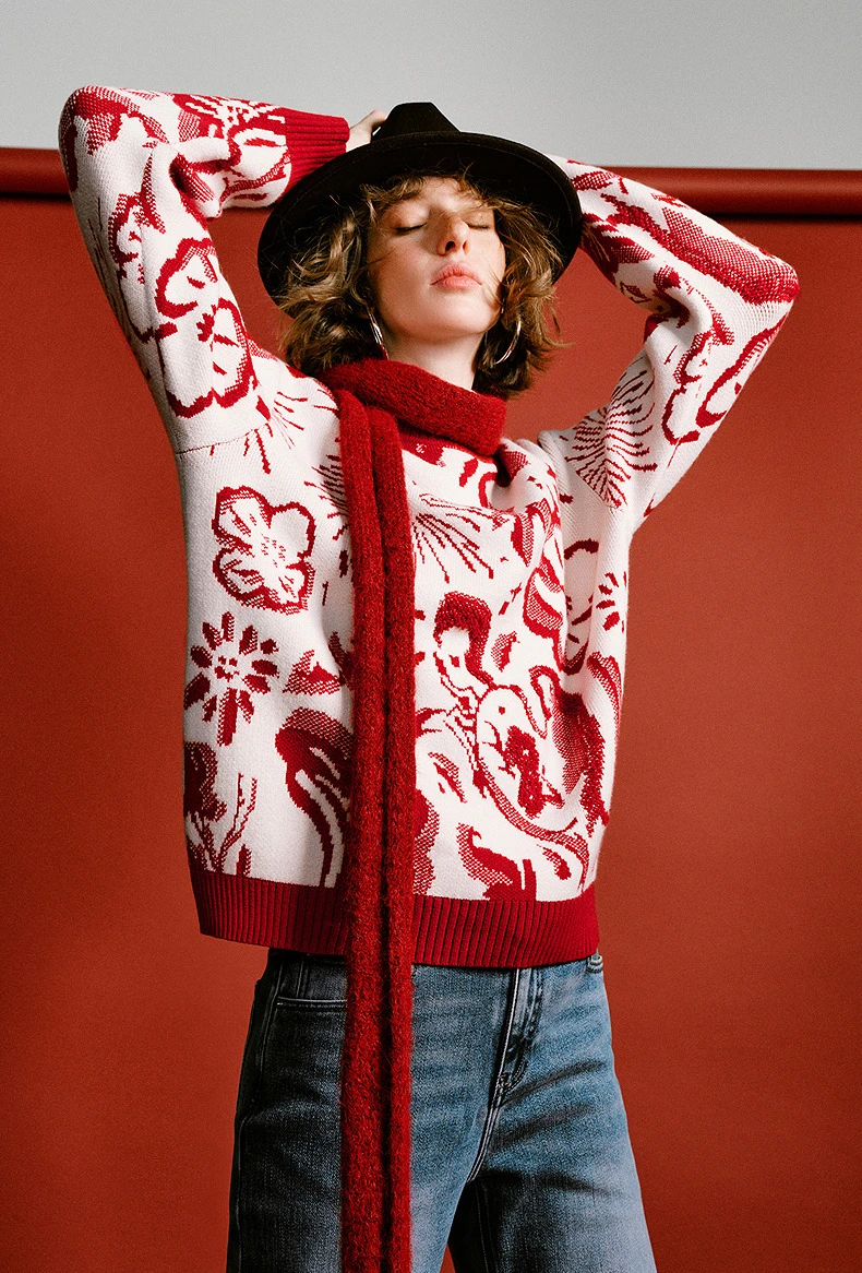 Unleash your style this winter with our trendy pullover jumper from Toyouth. Crafted from a soft, high-stretch blend of acrylic and polyester, it offers a flattering silhouette and relaxed fit. The vibrant red color and playful cartoon pattern make it a statement piece for the office or casual outings. Available in extended sizes for every body.