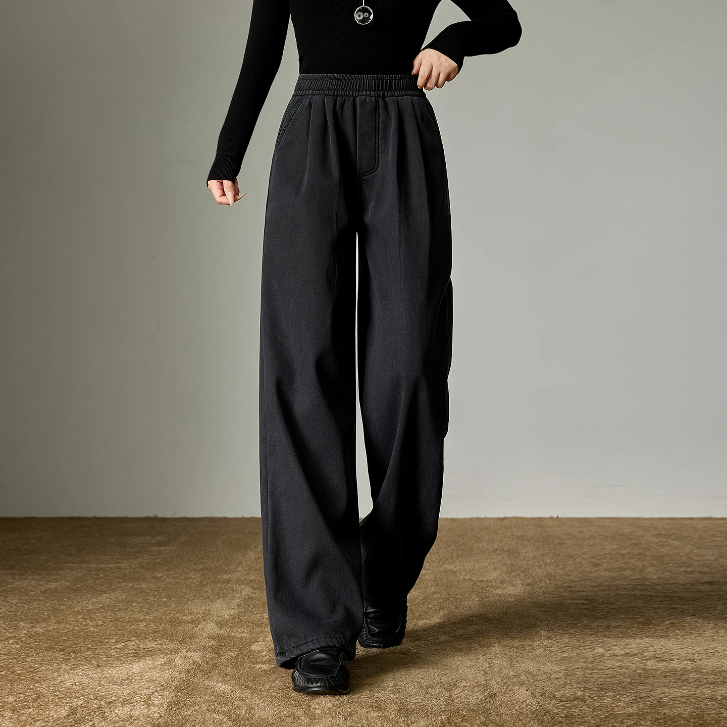 Designed for the modern woman seeking comfort and understated elegance during winter, these wide-leg pants by Toyouth feature a fleece-lined interior and a relaxed ankle-length silhouette. The elastic mid-rise waist offers a secure yet adaptable fit, ideal for casual wear.
