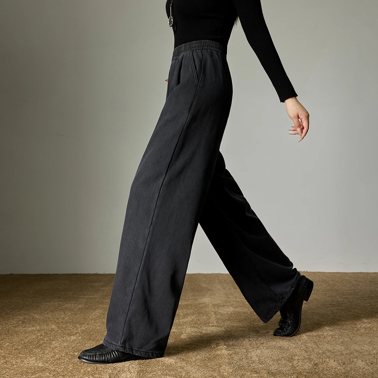 Embrace winter comfort with the Women’s Lyocell Fleece-Lined Wide-Leg Ankle Pants by Toyouth, designed for those who appreciate understated style and practical warmth. These trousers blend a relaxed wide-leg silhouette with a mid-rise elastic waist, offering both ease and elegance for everyday wear during cooler months.