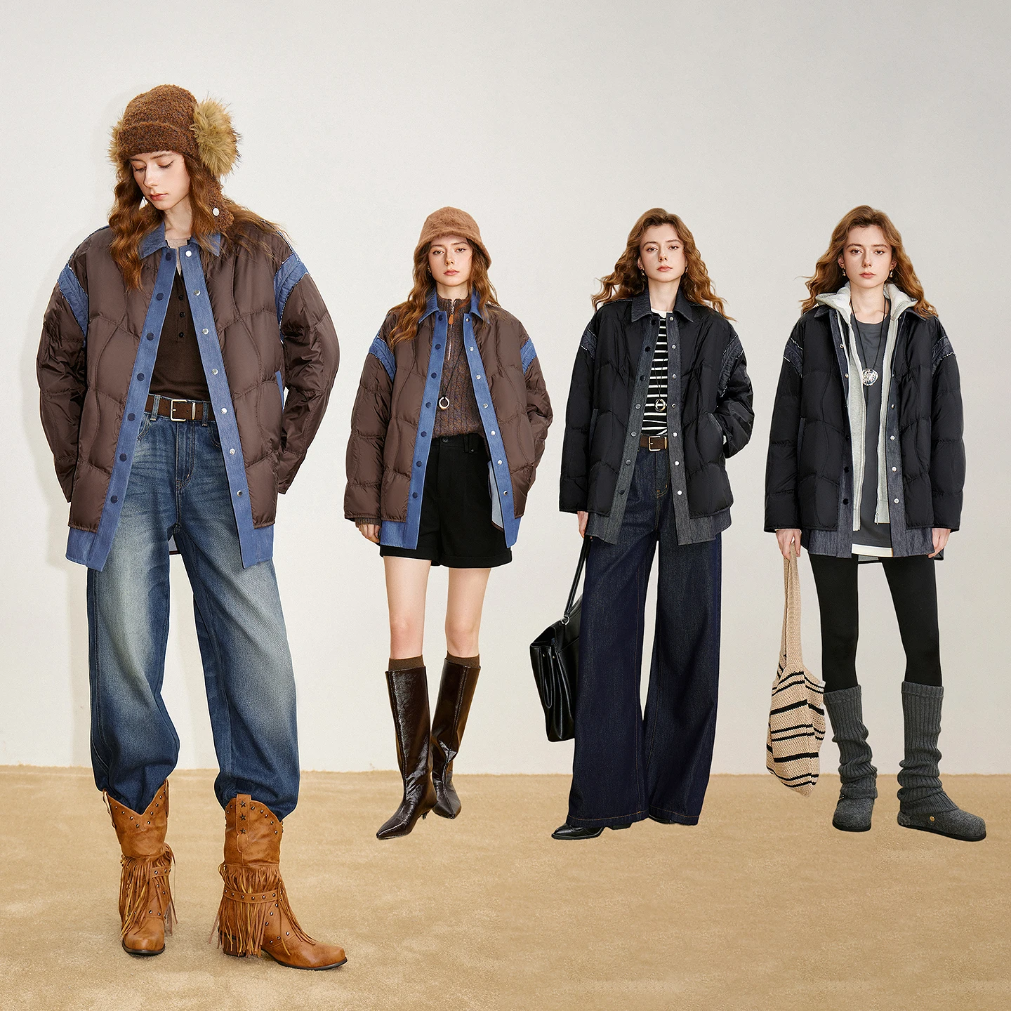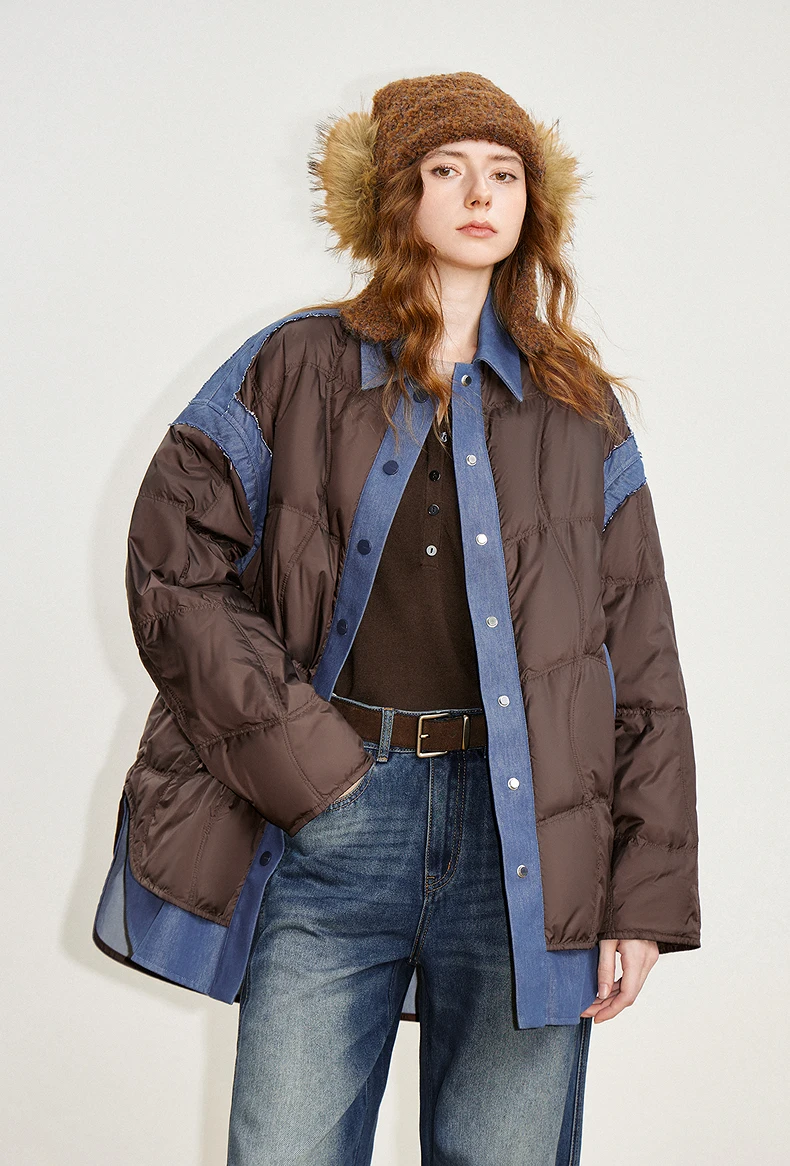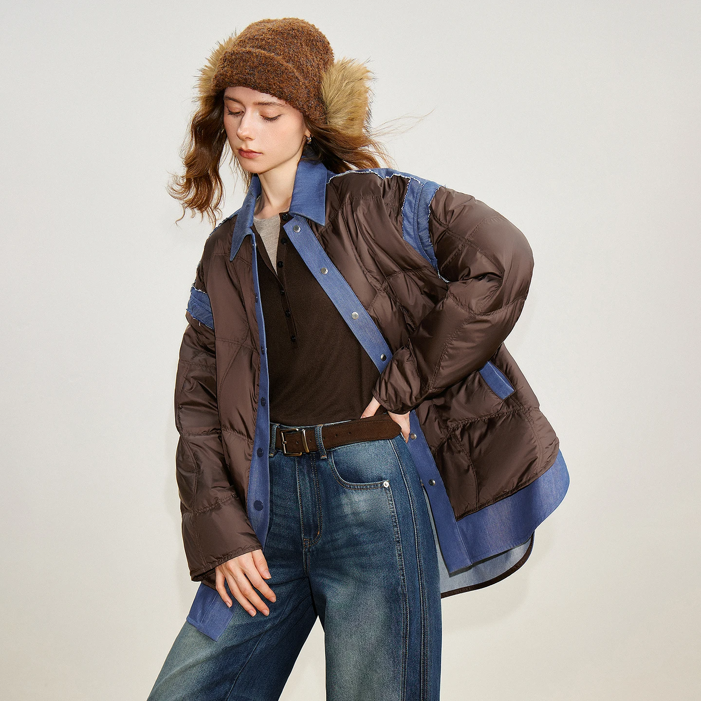1 review for TOYOUTH Women 90% Down Jacket Winter New Fake Two Piece Antibacterial Turn Down Collar Warm Jacket