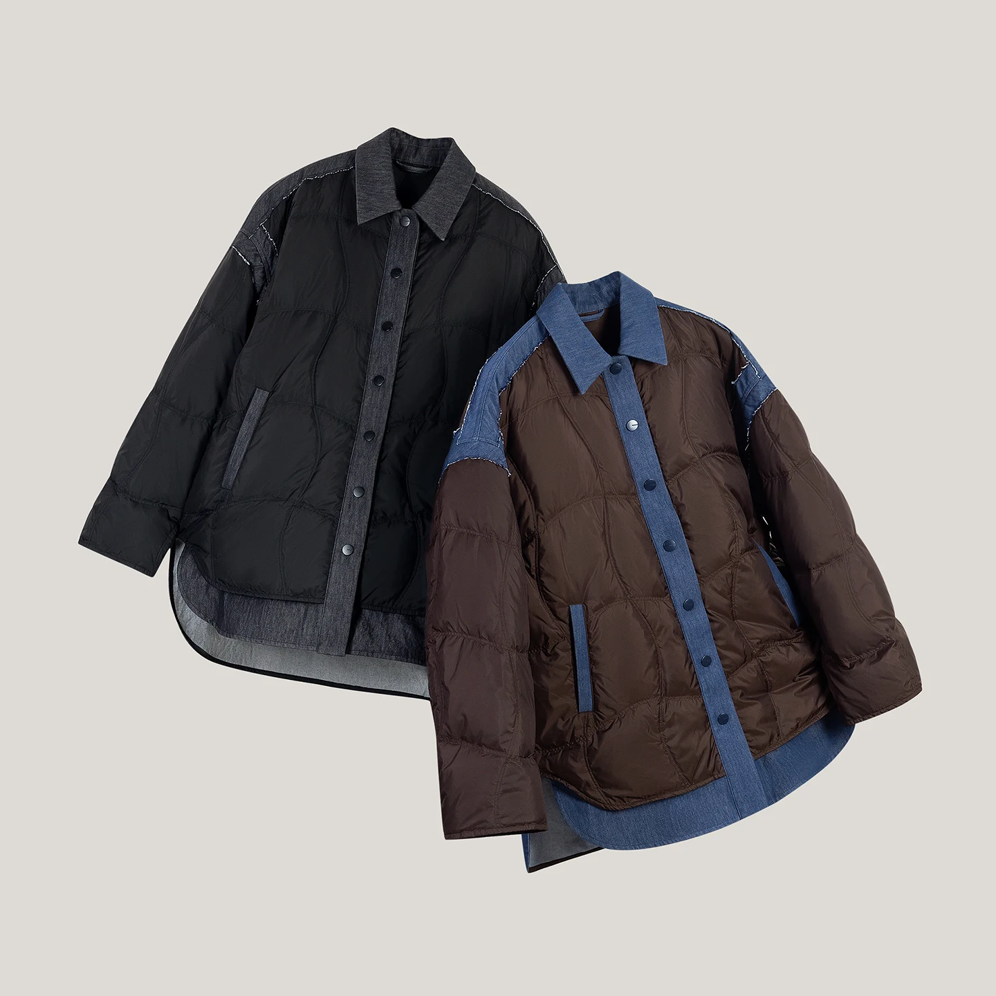 TOYOUTH Women 90% Down Jacket Winter New Fake Two Piece Antibacterial Turn Down Collar Warm Jacket