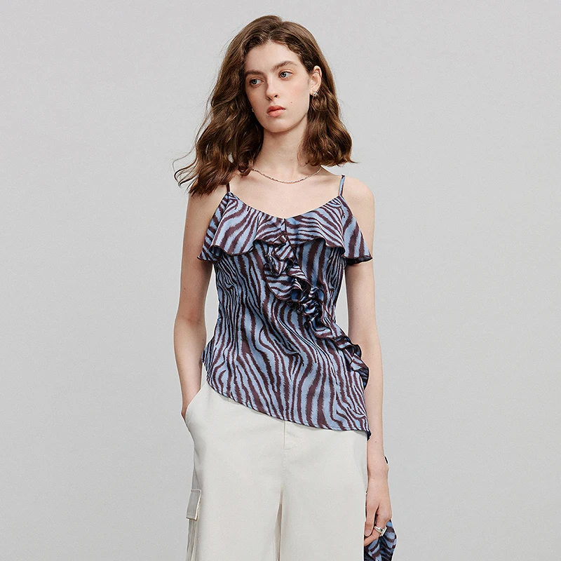 Crafted to move with you, this blouse offers a comfortable, confident fit that flatters your silhouette. The super-short length and sleeveless design provide the ultimate breathability, making it an everyday essential for those warm summer days. Pair it with tailored trousers for a polished office look, or style it with your favorite shorts for a casual outing. The vibrant blue and eye-catching leopard pattern are sure to spark joy and inspire compliments wherever you go.