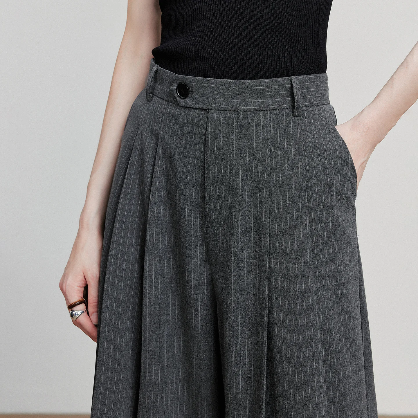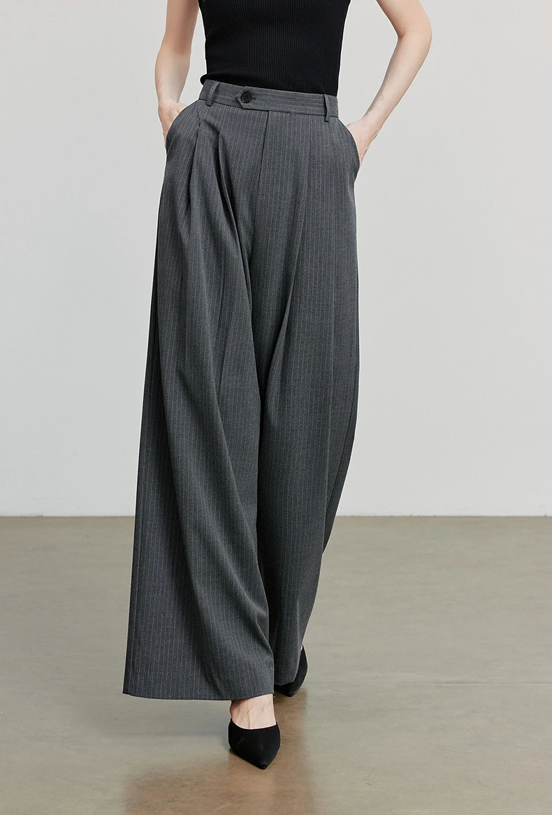 2 reviews for TOYOUTH Women Casual Pants Autumn New Retro Striped Wide Leg Suit Pants Dark Gray