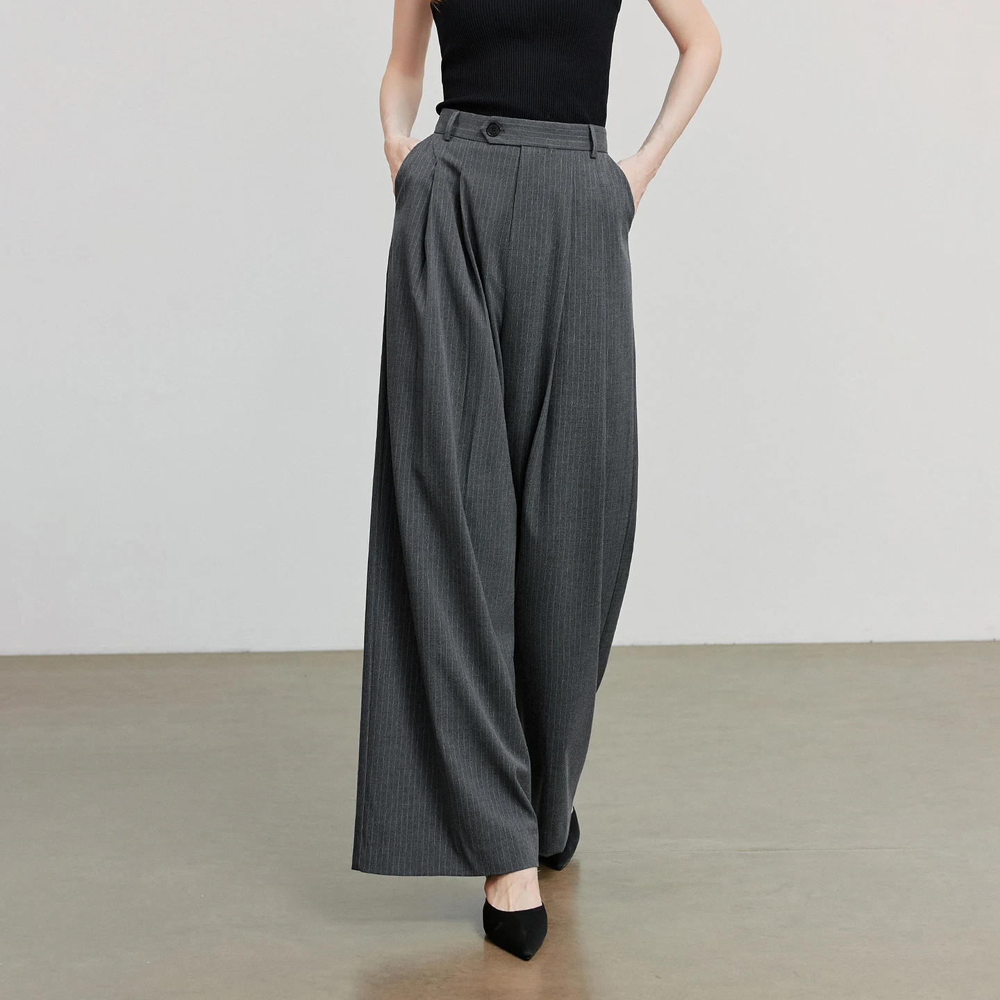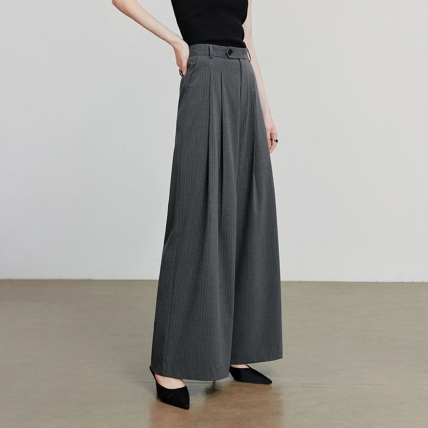 TOYOUTH Women Casual Pants Autumn New Retro Striped Wide Leg Suit Pants Dark Gray