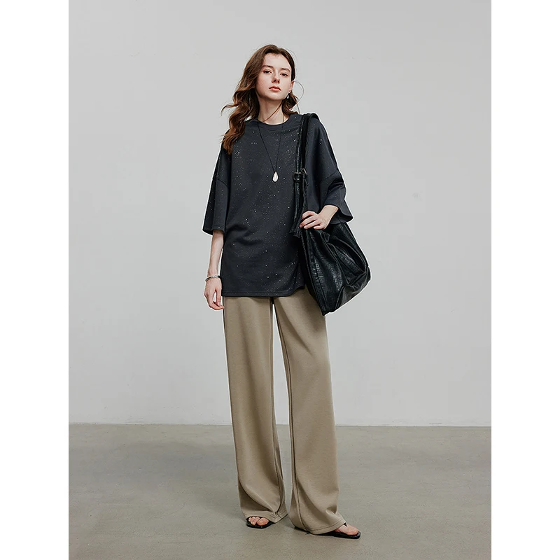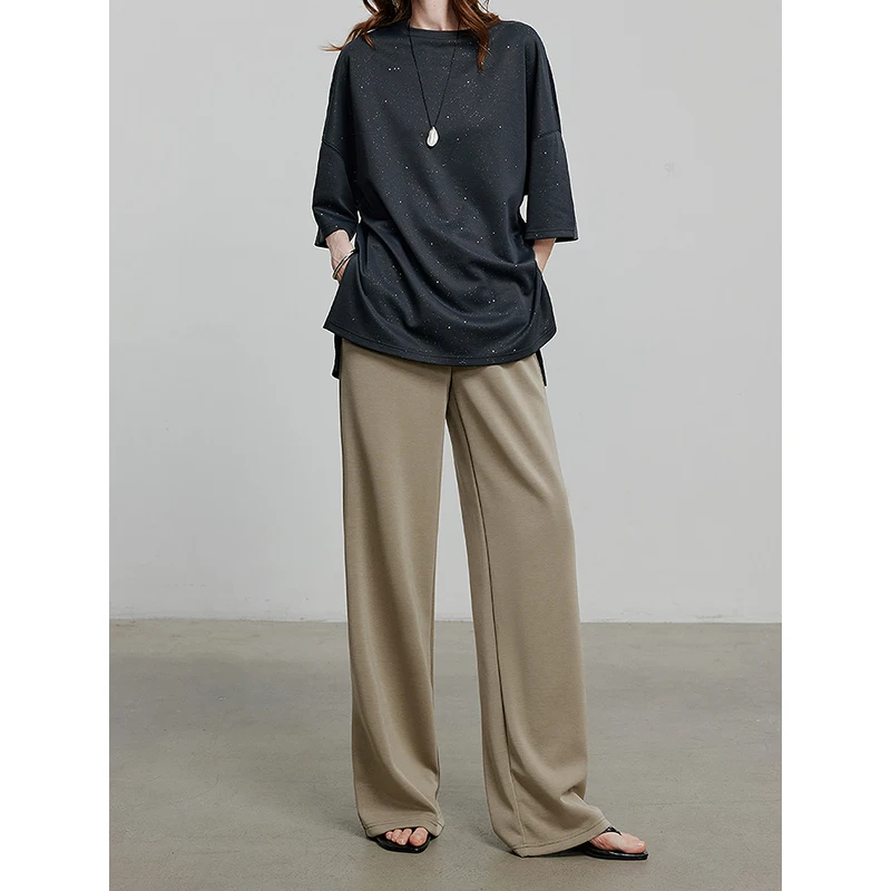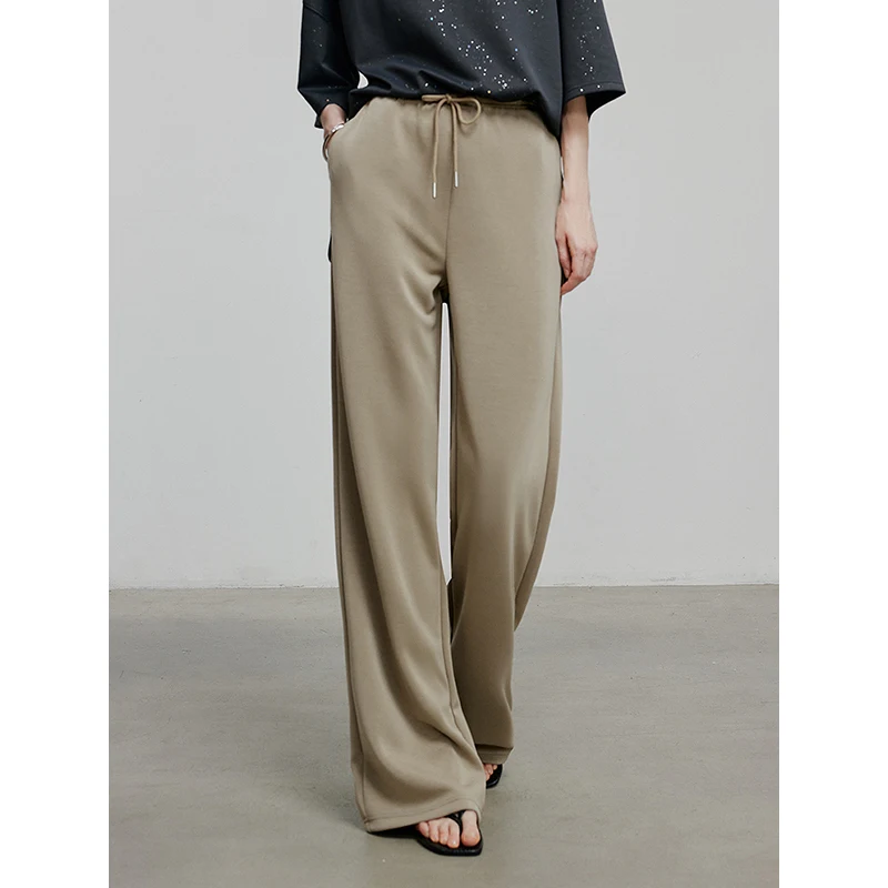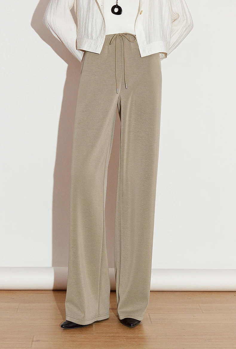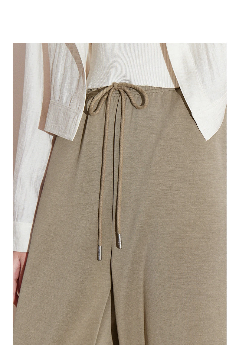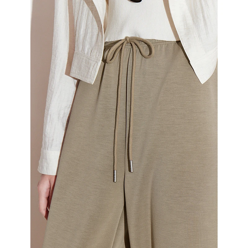 Step into effortless elegance with these luxurious wide-leg pants. Crafted from a soft jersey blend of polyester, modal, and spandex, they offer a comfortable, loose fit that flatters every silhouette. The pleated front and elastic waistband ensure a refined look, while functional pockets add practicality. Perfect for the modern office lady or casual summer outings, these light brown pants are an essential addition to your wardrobe. Embrace style and comfort in every stride.