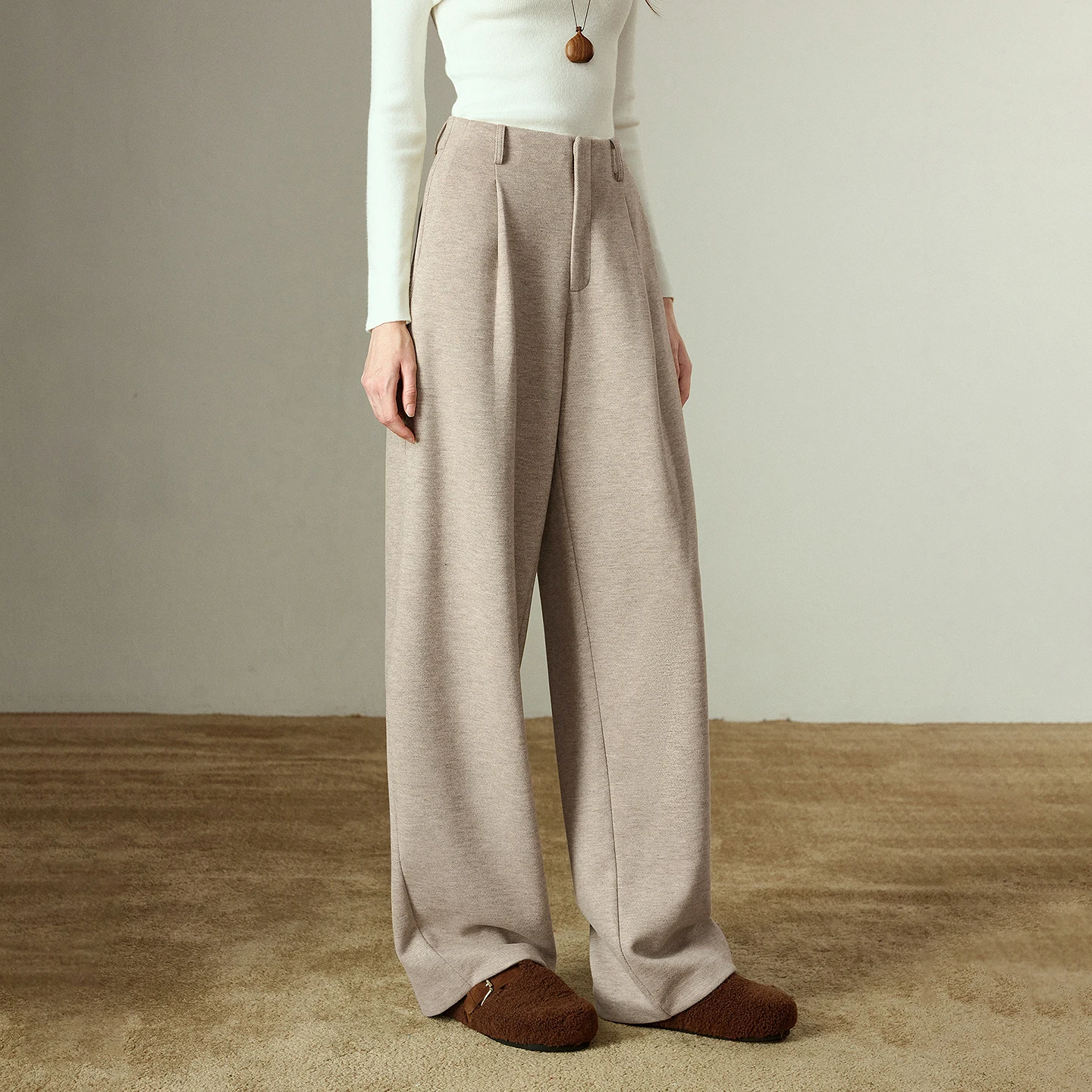 A: These wide-leg jeans are crafted from a soft blend of polyester, elastane, and viscose, providing slight stretch for flexibility and comfort throughout the day, making them ideal for casual wear and winter outings.