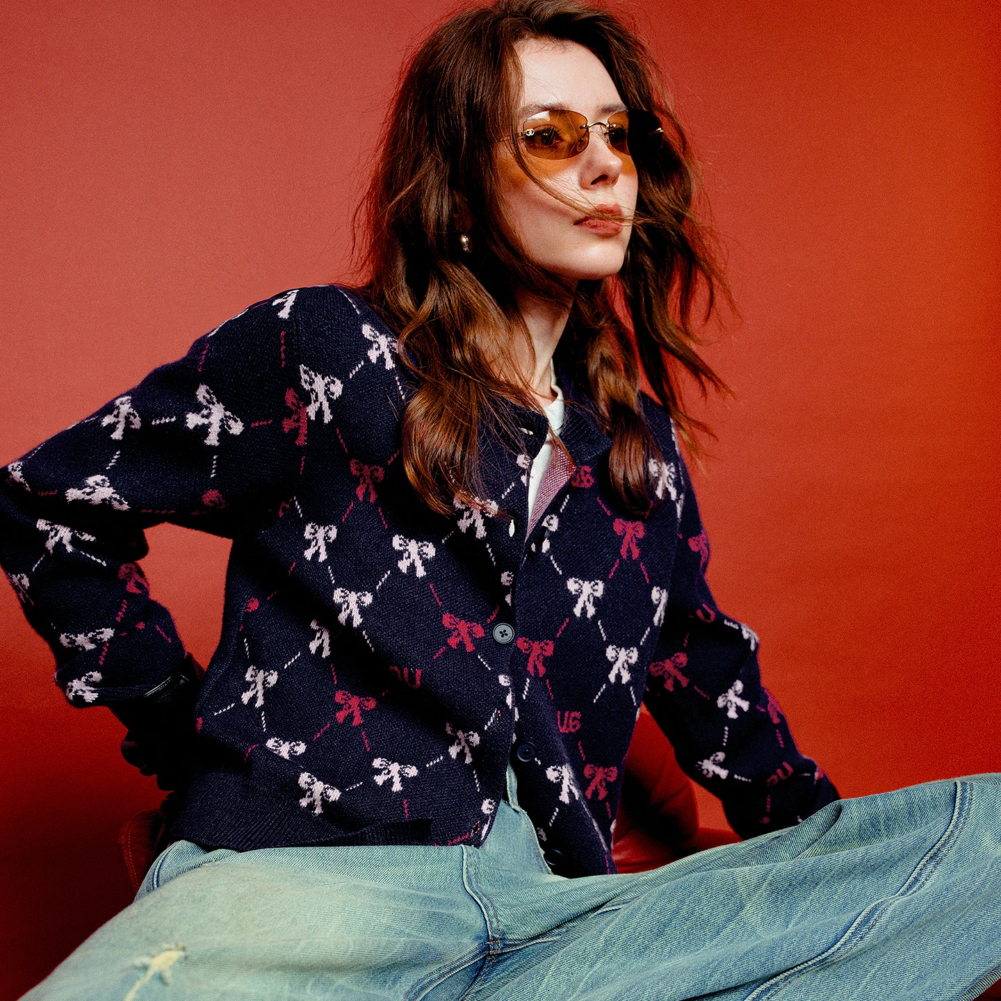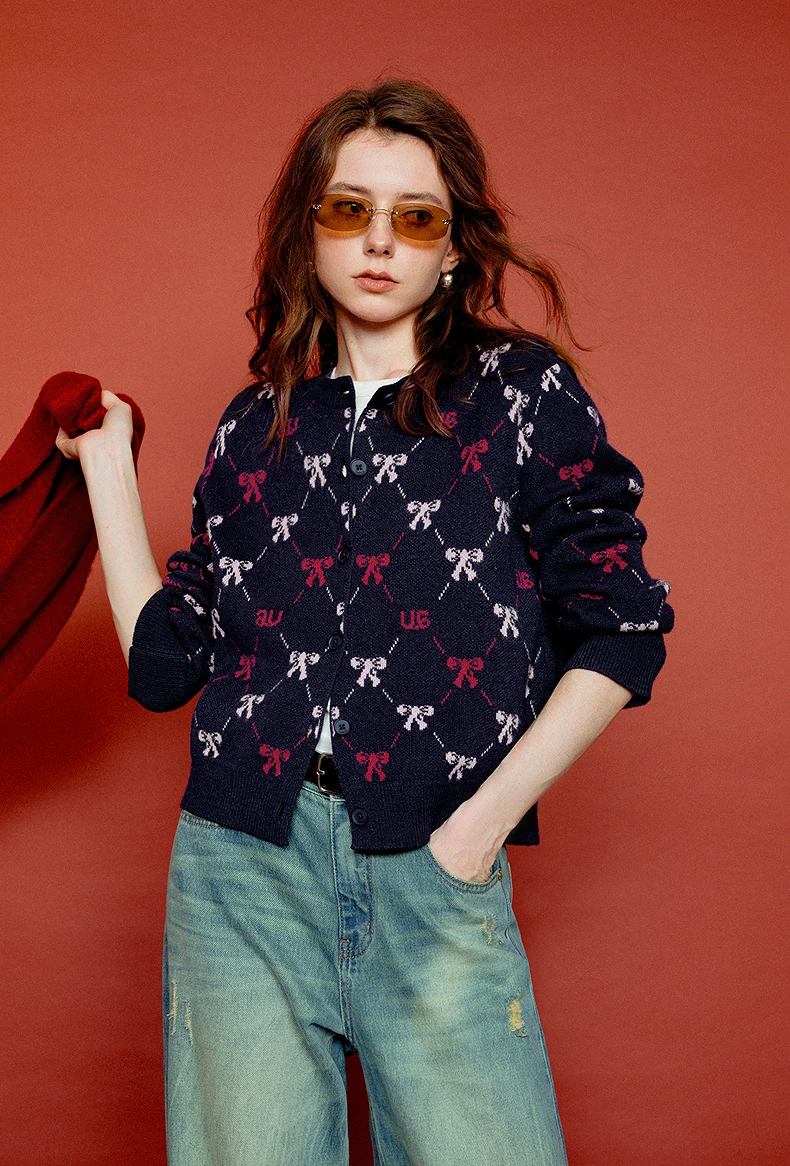 Elevate Your Wardrobe with TOYOUTH Bow Monogram Cardigan