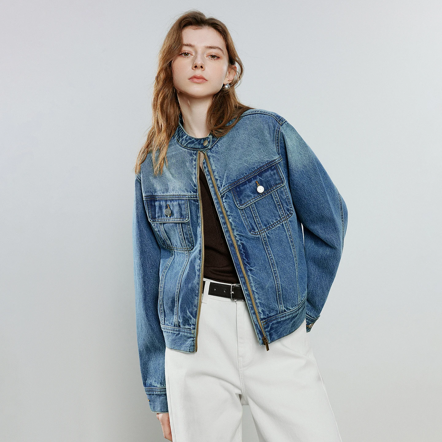 Stand-Out Women’s Denim Jacket with Stylish Zipper Details