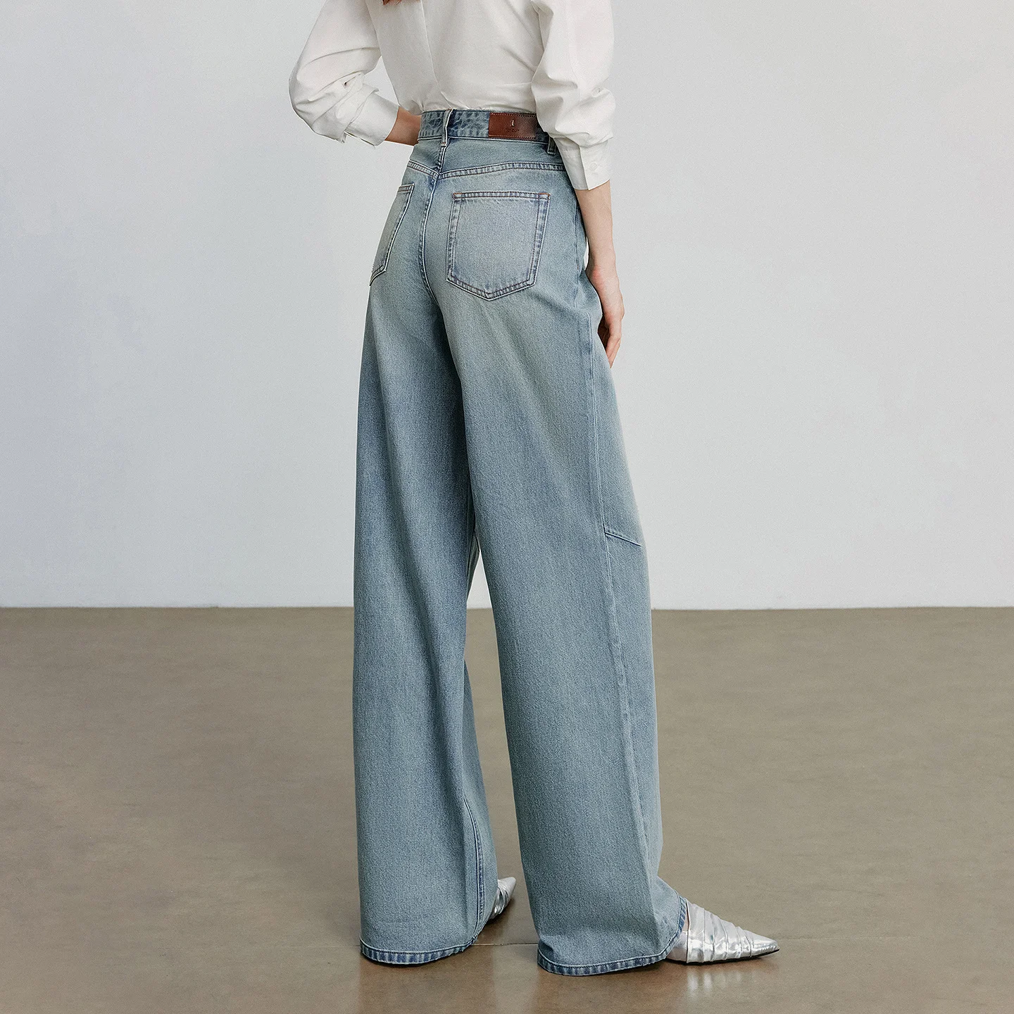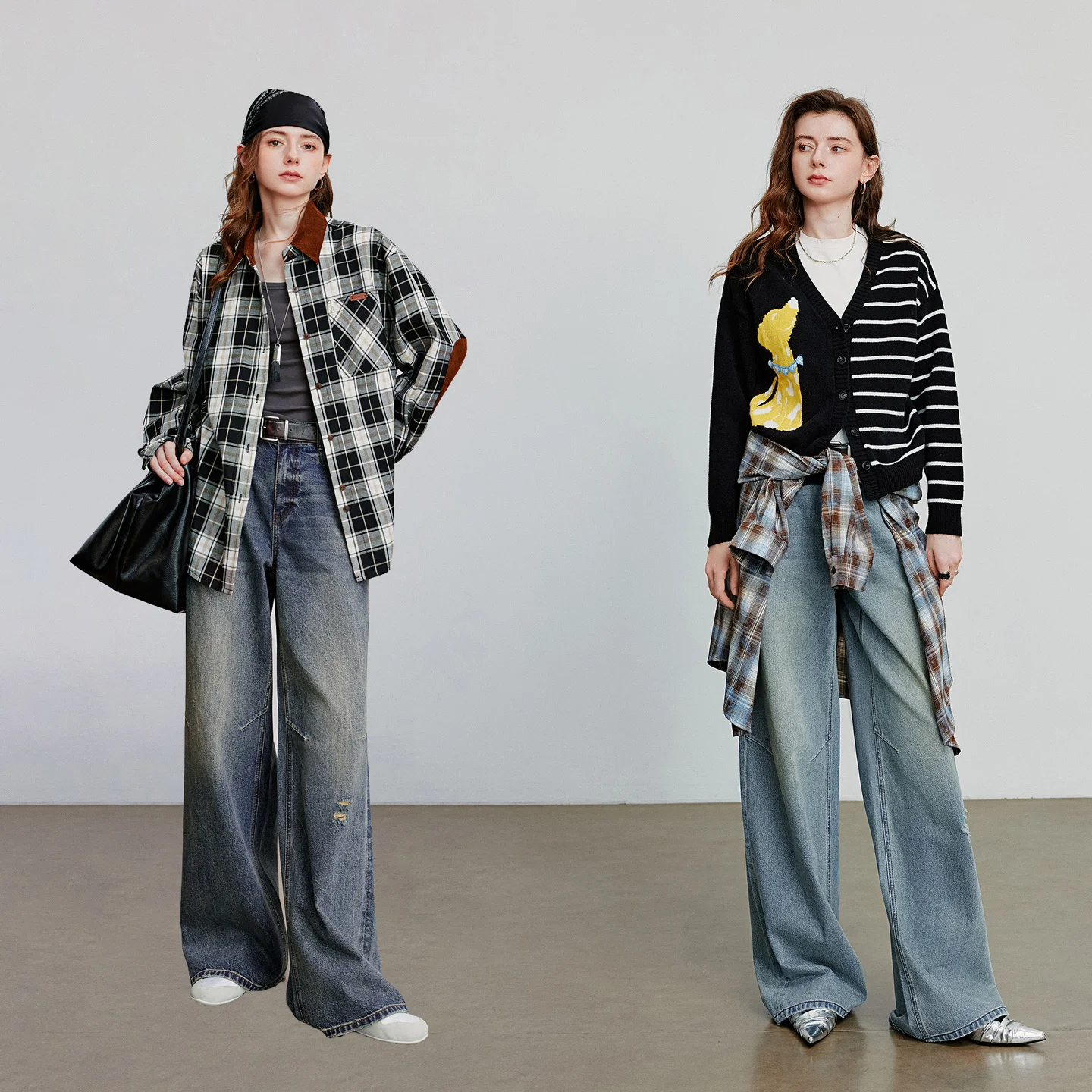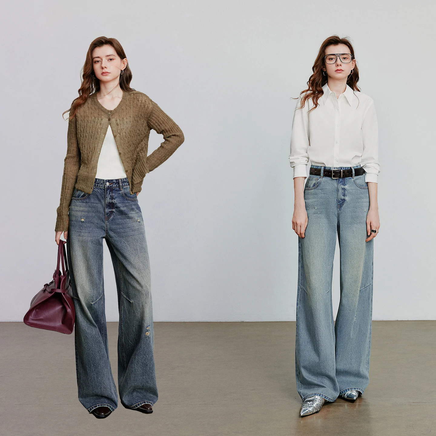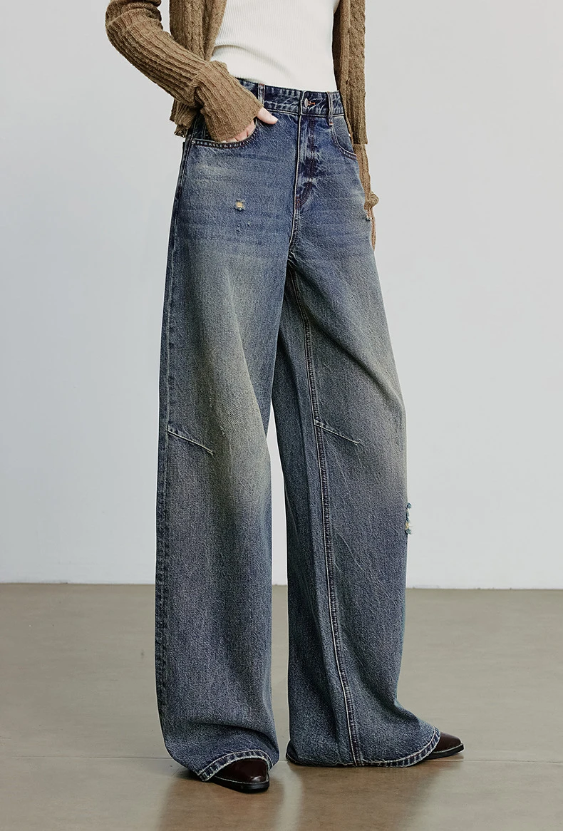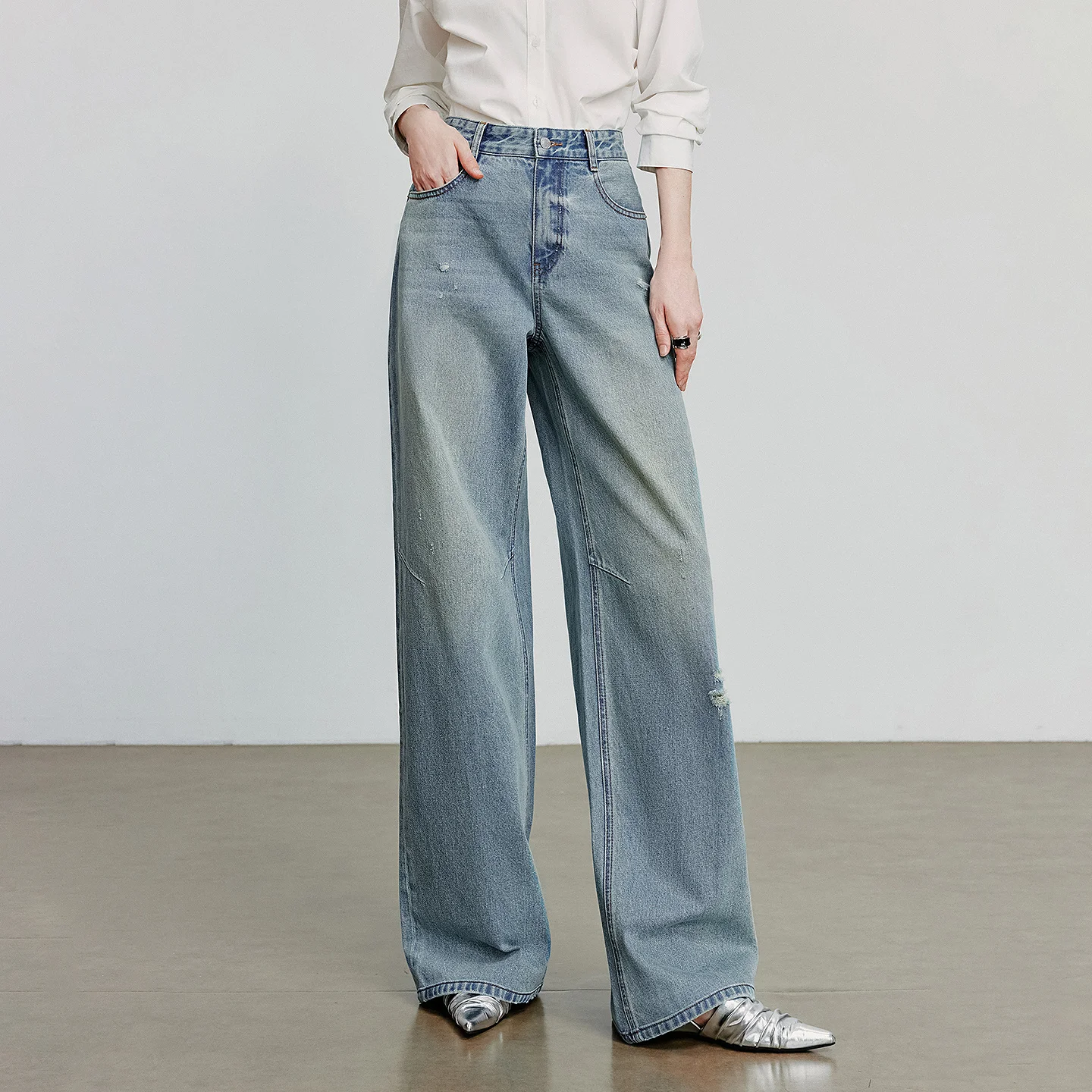 TOYOUTH Women Denim Jeans – Autumn New Ripped Streetwear Wide Leg Straight Trousers