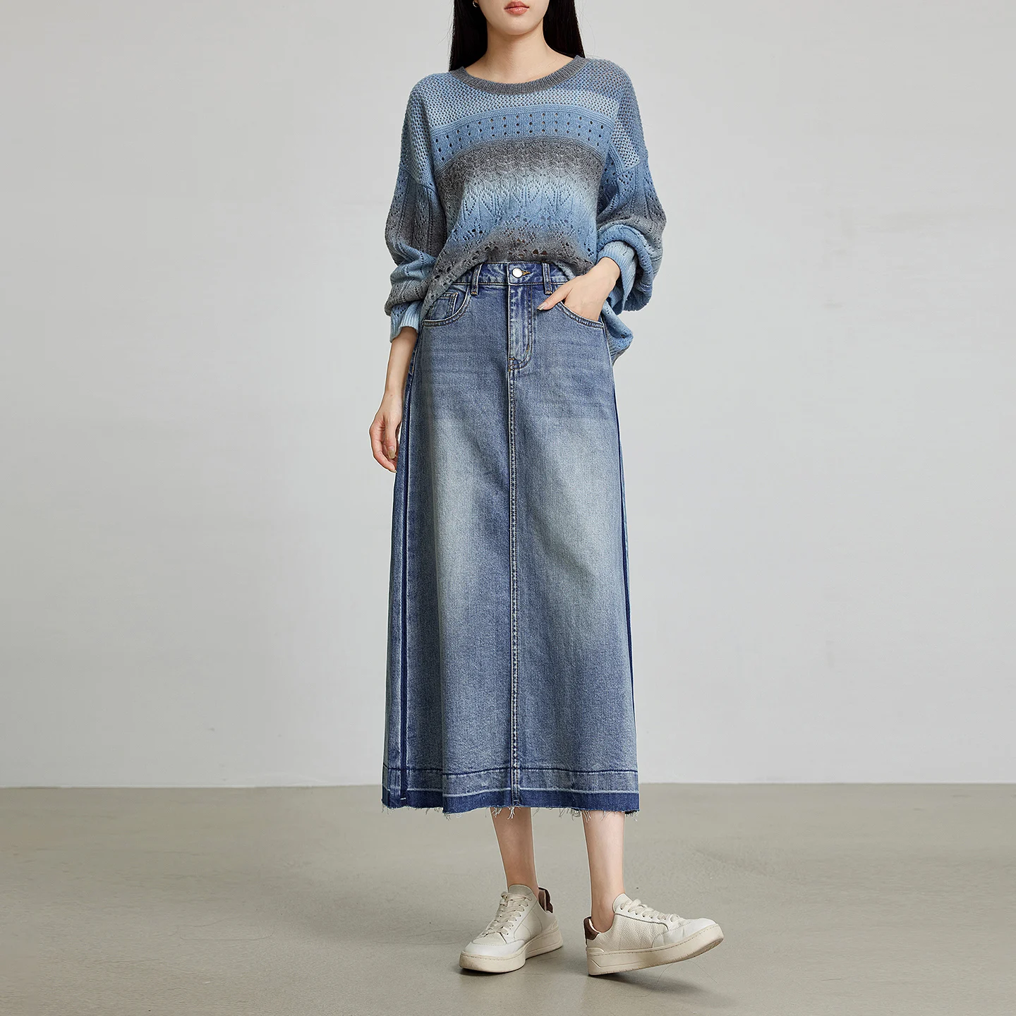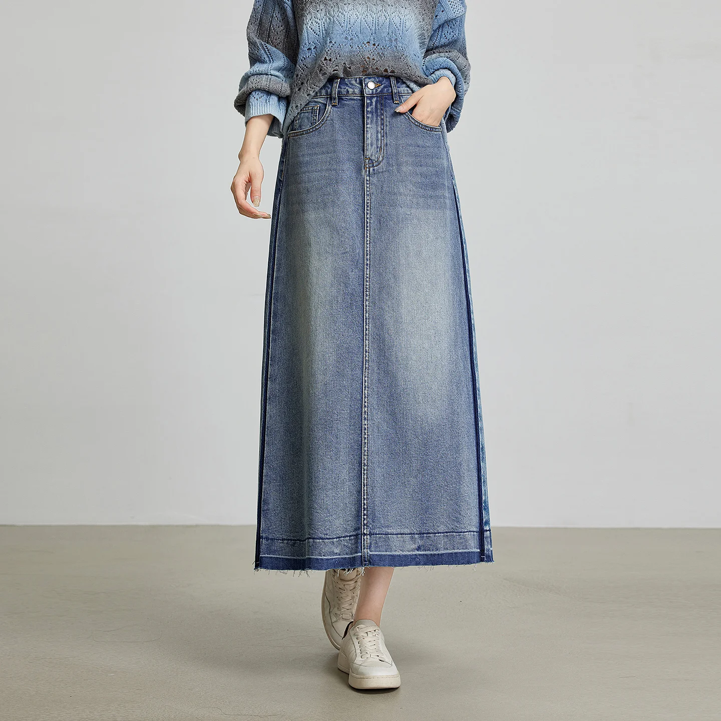 Step into autumn with this stylish A-line denim skirt, perfect for the office or casual outings. Made from a comfortable cotton-elastane blend, it offers a flattering silhouette and ankle-length design. Available in a range of sizes, this wardrobe essential combines versatility and elegance, allowing you to express your unique style effortlessly.