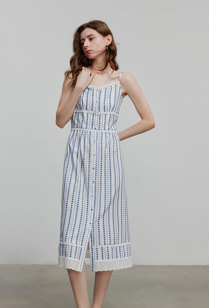 18 reviews for Elegant Striped A-Line Summer Dress for Women in Blue & White