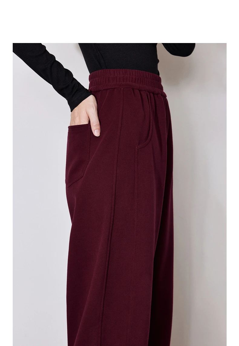 Indulge in luxurious comfort with our Warm Banana Fleece Sweatpants, designed for the modern woman. Crafted from soft jersey fabric, these elegant pants feature a mid-rise elastic waist and pleated front for a refined silhouette. Available in classic black, burgundy, and gray, they offer pockets for practicality. Perfect for autumn and winter sports, they effortlessly blend style and functionality. Experience cozy sophistication in every step.