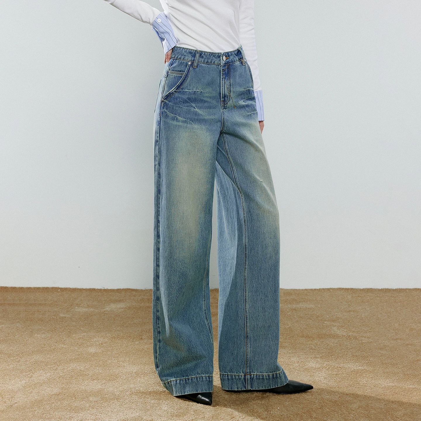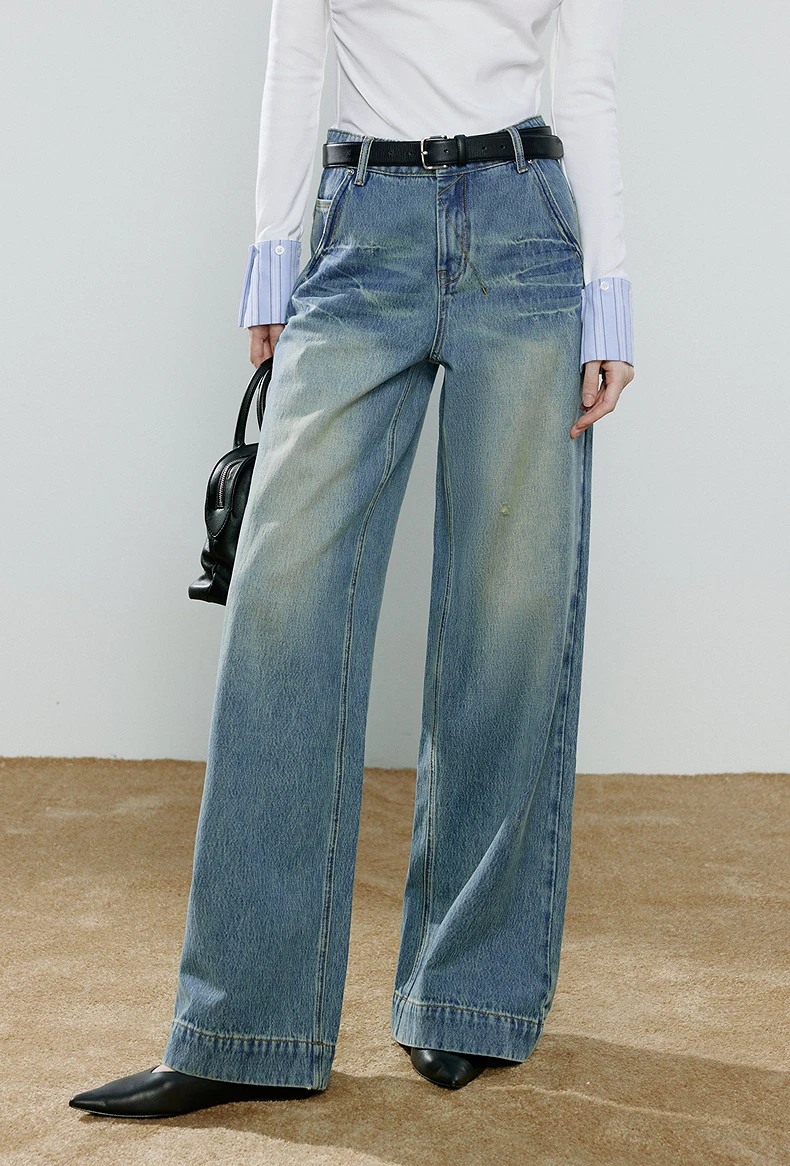 Our wide leg denim pants are designed to celebrate your natural shape. With a mid-rise waist and loose fit, they provide comfort and confidence for everyday wear.