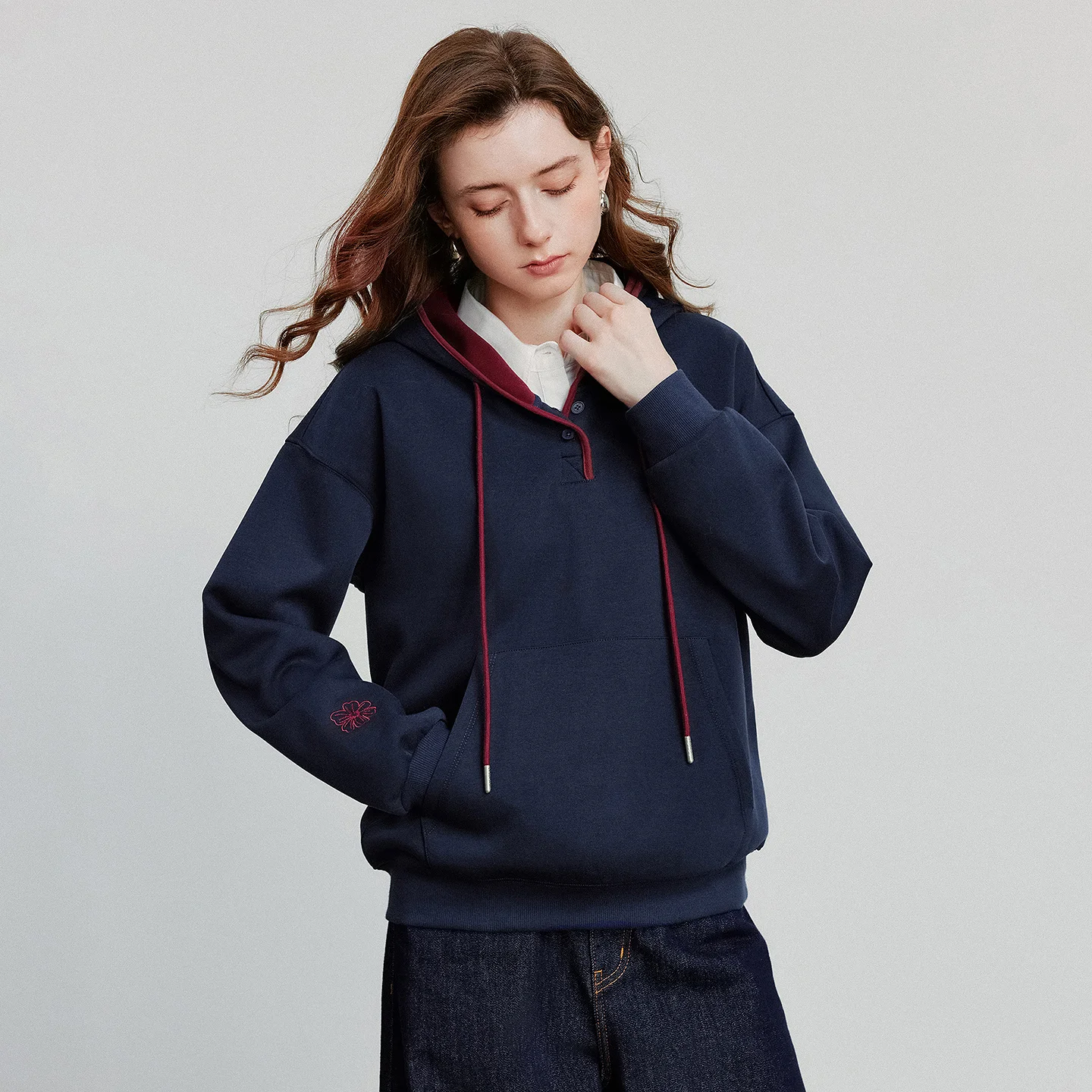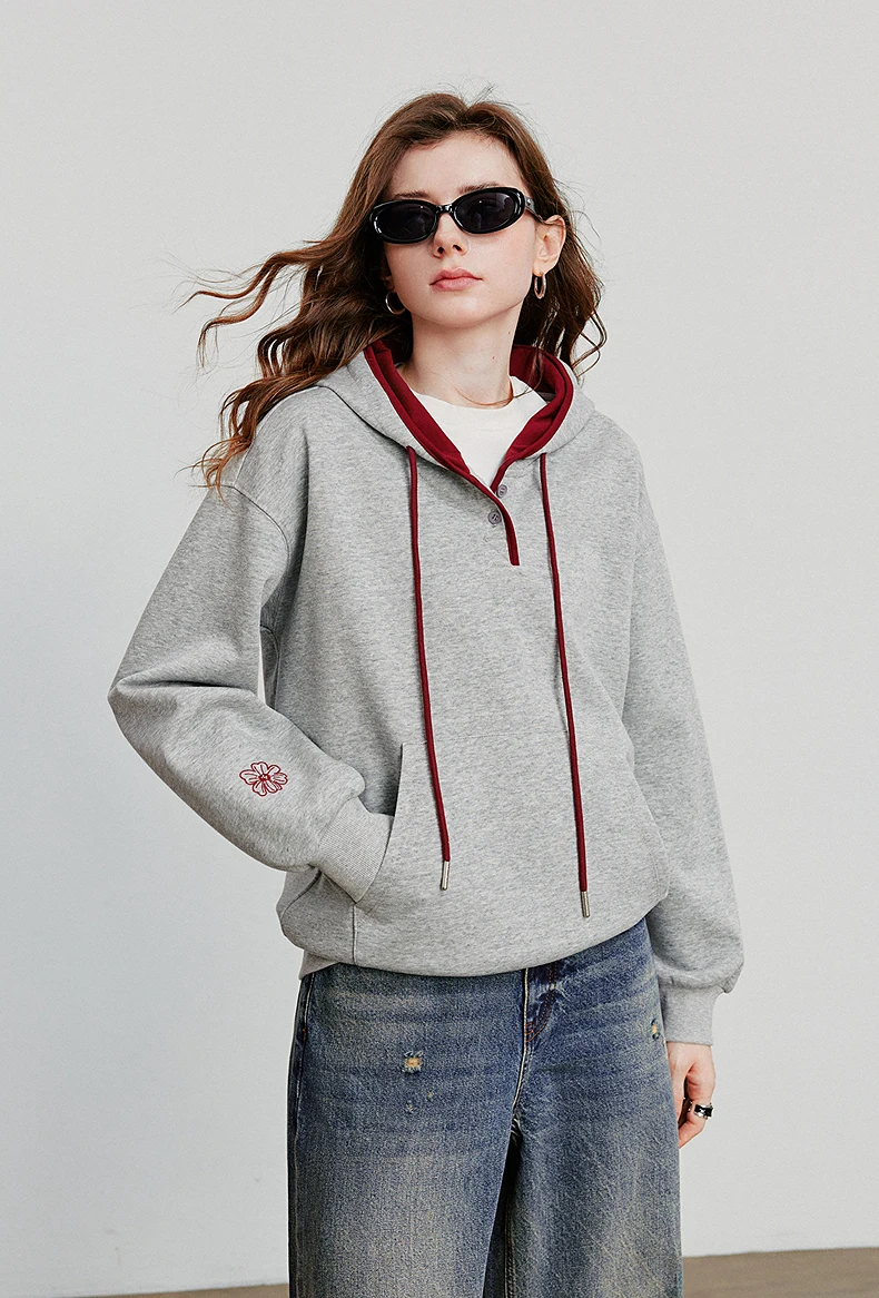 Whether you’re headed to a casual brunch, running errands, or enjoying a cozy night in, this hoodie is tailored to move with you. The slight stretch in the fabric allows for a smooth, confident fit, while the stylish patchwork and embroidery add a touch of personality. Pair it with jeans or leggings for a relaxed yet fashionable ensemble that fits seamlessly into your everyday life.