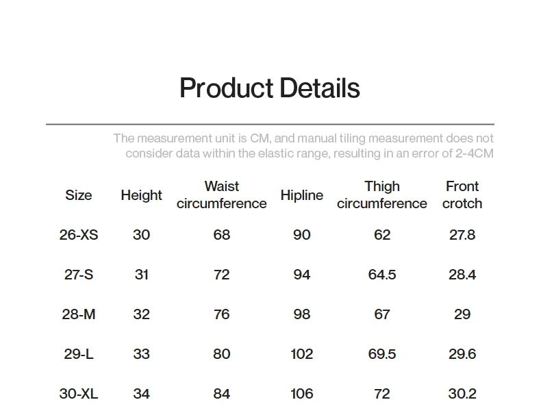 For non-stretch garments like Tailored Pants, Denim, or High-Waisted styles, prioritize the Waist measurement. For Skirts and Shorts, the Hip measurement is crucial to ensure smooth movement and fit over the fullest part of your body. If your hips and waist fall into different sizes, choose the size that accommodates your larger measurement.
