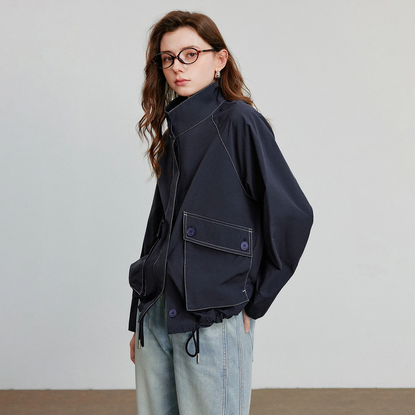 TOYOUTH Women Jacket Coat Autumn New Barn Style Workwear Large Pocket Stand up Collar Single Breaste Button Outwear Coat