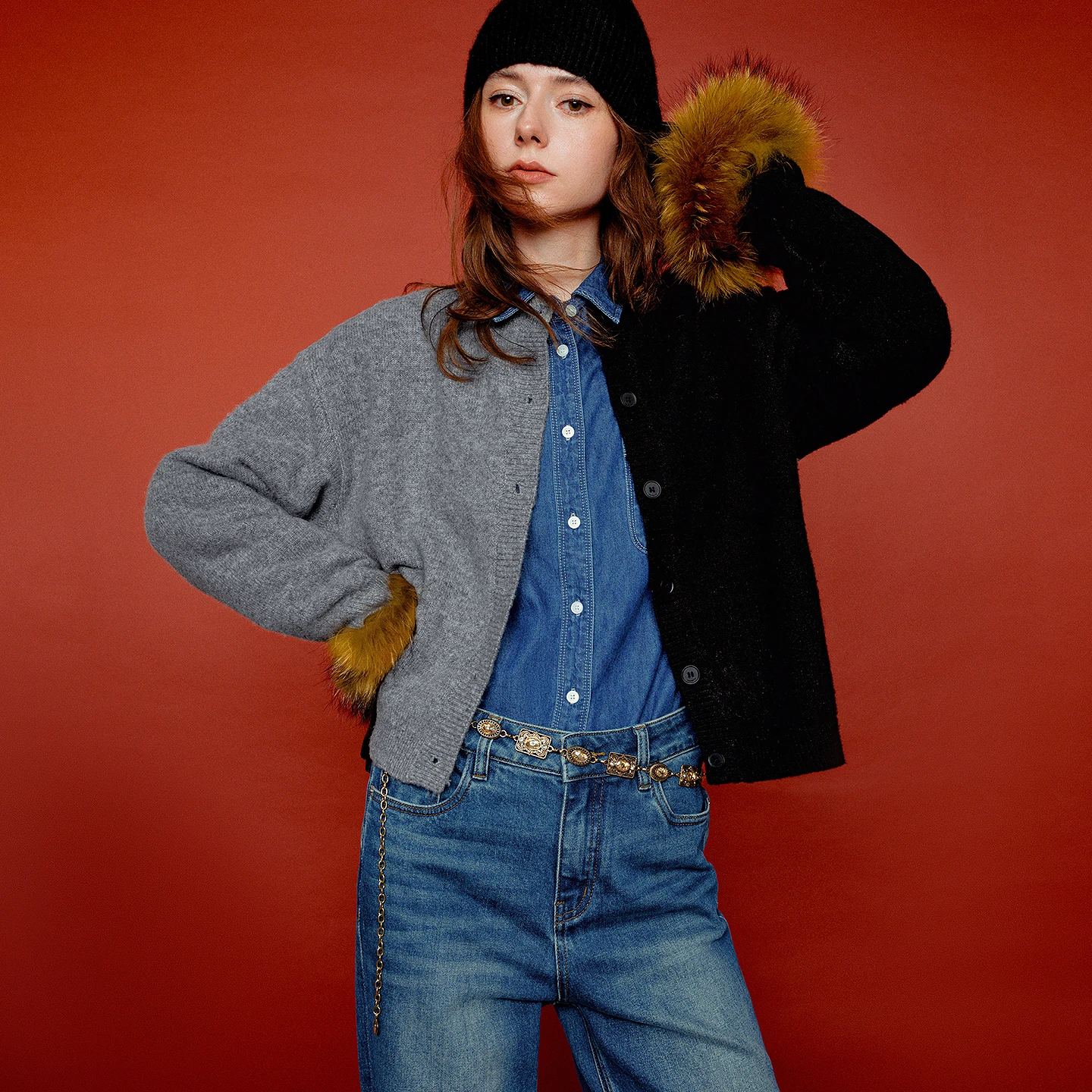 - Single-breasted closure with button decoration adds a touch of modern elegance
