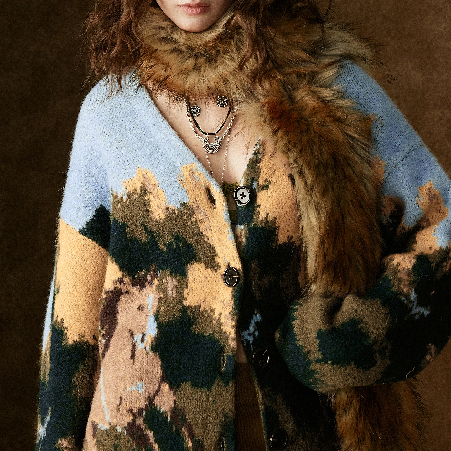 - V-neck collar and single-breasted closure for a sleek silhouette