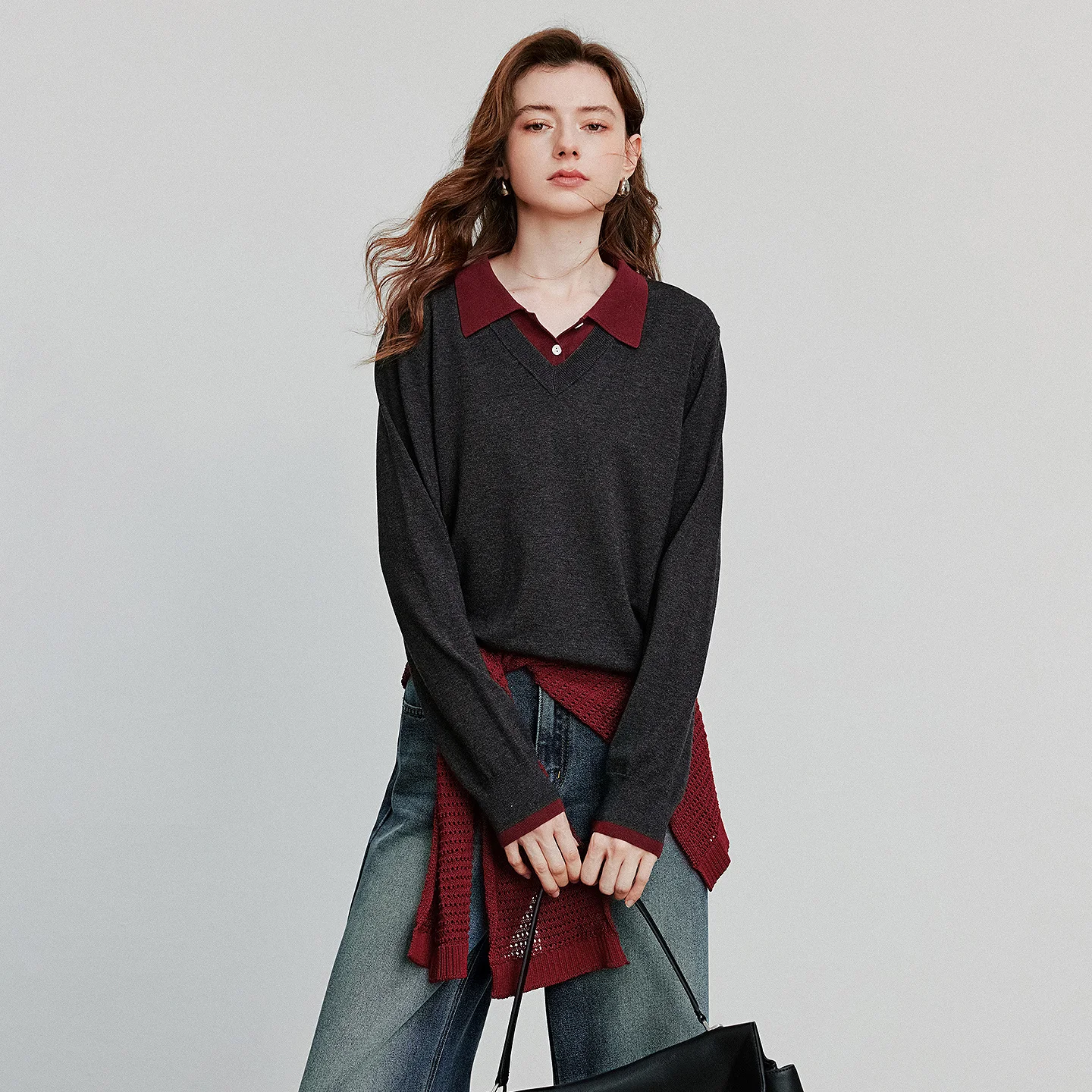 3 reviews for TOYOUTH Women Knitted Shirt Autumn New Collection: Lyocell Splicing Fake Two piece Retro College Style Top