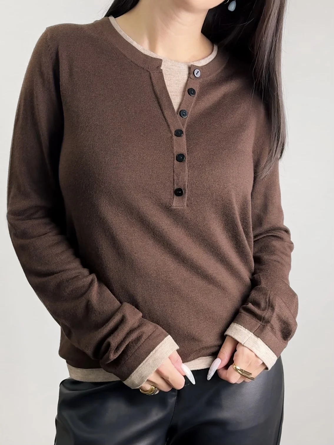 42 reviews for TOYOUTH Women Knitted Shirt Autumn New Retro Color Contrast Splicing Fake Two Piece Pullover Bottom Tops