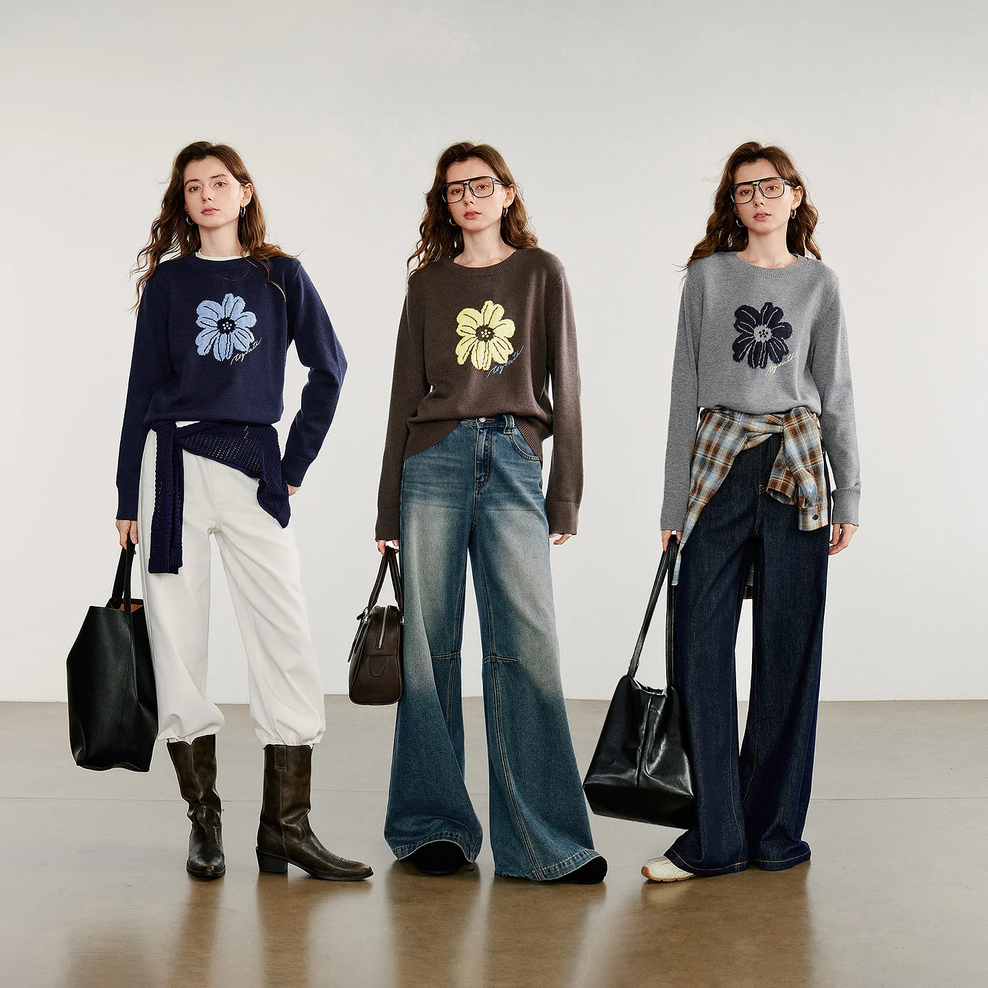 3 reviews for TOYOUTH Women Knitted Sweater Autumn New Countryside Style Flower Jacquard Long Sleeve Round Neck Pullover Tops