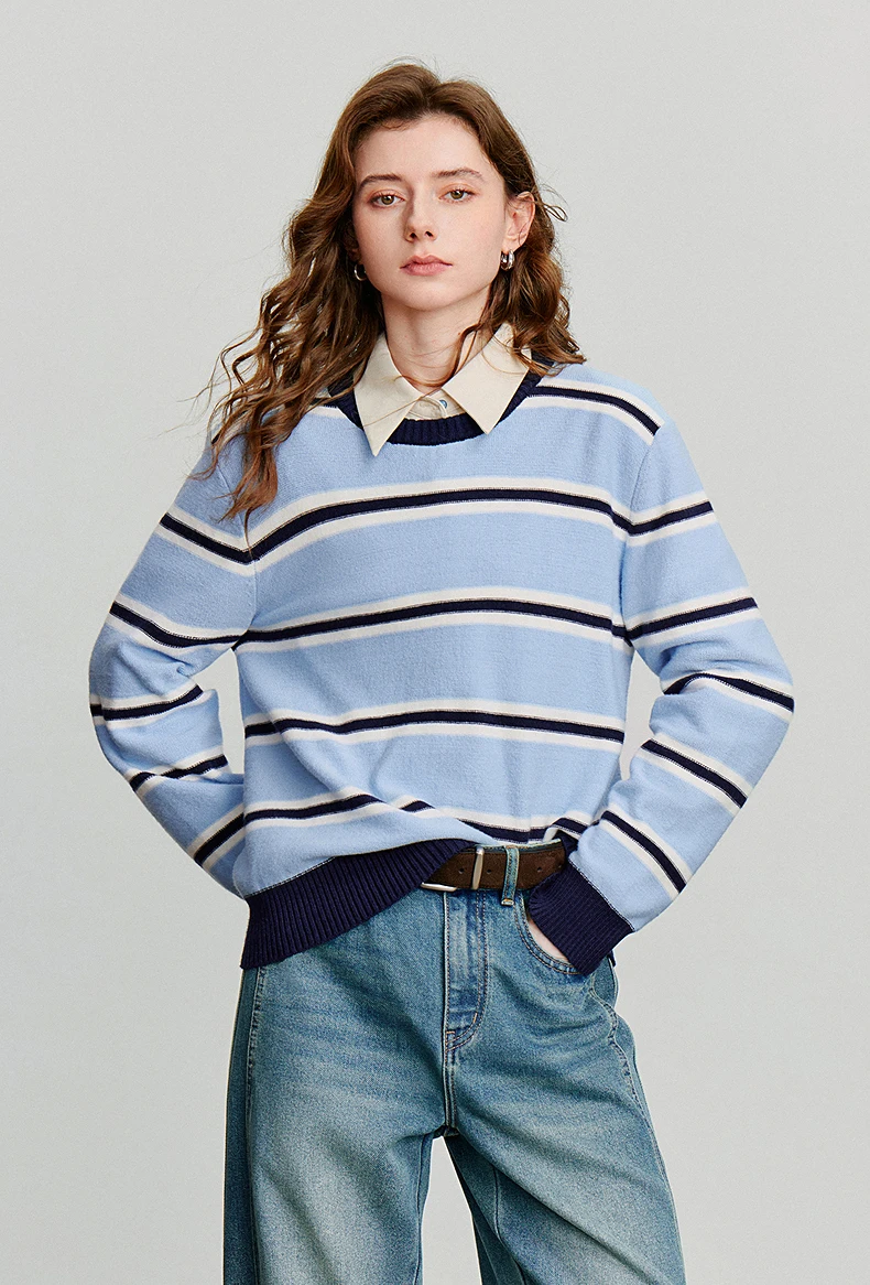 - Design: Vintage-inspired striped pattern with a classic O-neck collar and full-length sleeves